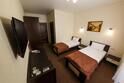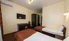 Расположен в самом начале Пионерского проспекта. До города 10 мин пешком (есть остановка прям у отеля), до ближайшего м-на Магнит 20 мин пешком, до центра города - около 30 мин. Приехали мы впятером (мои родители, дочка, муж и я) на 21 день. В двери отеля мы вошли часов в 11 утра. Безумно приятная, милая и общительная администратор Зинаида провела нас по территории, всё показала и рассказала (даже предложила сразу выбрать номер), и мы спокойно вытащив пляжные вещи, положенные в чемодан специально поближе, побежали на море (пляжные полотенца нам дали сразу). Т.к. обед в 13.00, мы решили подойти пораньше - вдруг номера уже готовы. И они оказались убранными и ждали нас. Нам дали номера на втором этаже 205 и 208. 205 номер большой и просторный, с одной двуспальной кроватью и раскладным диваном, где спала дочка. Вот только расположен номер над входом в отель и из-за козырька у нас не было балкона. Для тех, кто один, неудобно сушить вещи, но у нас был второй номер напротив, так что вешали у родителей (сушилка на балконе для нас маловата, но я всегда беру с собой верёвку и прищепки - натянули и всем места хватило).