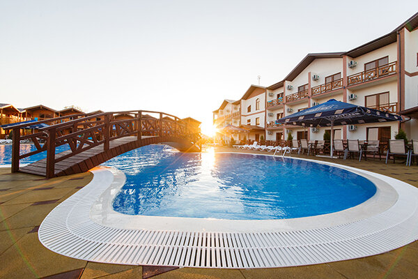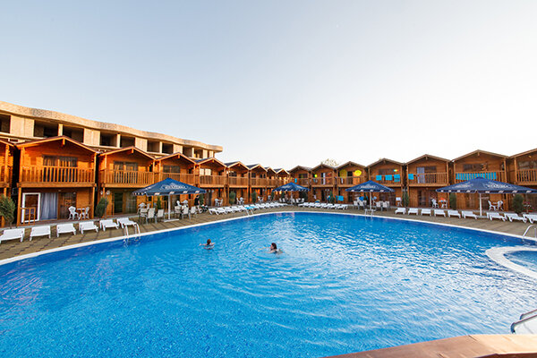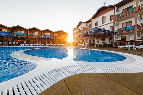 На огороженной и благоустроенной территории отеля «Long Beach Hotel» в Анапе есть WI-FI, шезлонги, кафе, игровая площадка, детский клуб (с аниматорами), бассейн с подогреваемой водой и детским отделением.