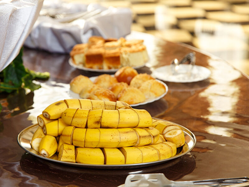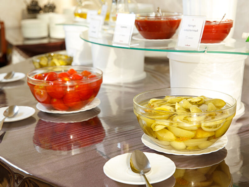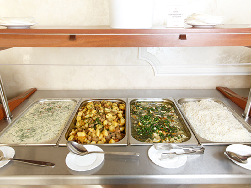 Столовая располагается в отдельном здании, просторном и красивом. Еда просто великолепная. Каждый день разное меню. На завтрак два вида каш, овощные салатики, фрукты, на горячее чего только не было (по 3-6 блюд за раз (зависело от размера подноса)): омлет, творожная запеканка, пельмени, оладушки, вареники, курица, паровые котлетки, блинчики пустые и с начинкой, глазунья, мясная и сырная нарезка, масло сливочное, йогурт в общей тарелке (так же как и майонез, сметана, кетчуп, горчица и .т.д.). Чай пакетированный, кофе растворимый, печеньки, пироженки, кексики, рулетики и т.д. На обед безумно вкусные супы: харчо, рассольник, щи, борщ, грибной, лапша, солянка, уха. Куриный бульон есть на все приёмы пищи, на обед - плюс еще два различных супа. 2-3 вида салатов (всегда разные и интересные - про все не расскажешь). Вторые блюда и на обед, и на ужин также разнообразные, поэтому невозможно описать каждый. Много блюд из фарша (причем всякого: свиного, куриного, рыбного), но он очень вкусный (домашний). Всего не перечислить, поэтому про еду могу сказать выводом: безумно вкусная, домашняя пища, которая за 21 день не надоела и всегда хотелось попробовать всё. И я абсолютно не понимаю людей, которые пишут, что есть в отеле нечего. Ну никак не могу понять, чем они питаются дома! Я люблю готовить и делаю это хорошо, но здесь повар просто великолепный. Отдельное ему (или ей))) спасибо!!!