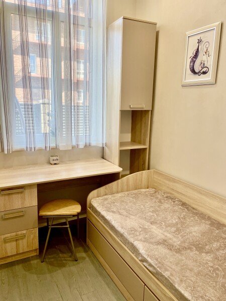 Шкаф. Комод, письменный стол, стул, торшер, зеркало. Плазменный телевизор СМАРТ TV, Wi-Fi. Панорамное остекление .Высокие потолки. В комнате есть возможность установить дополнительное место детская кроватка (по запросу).