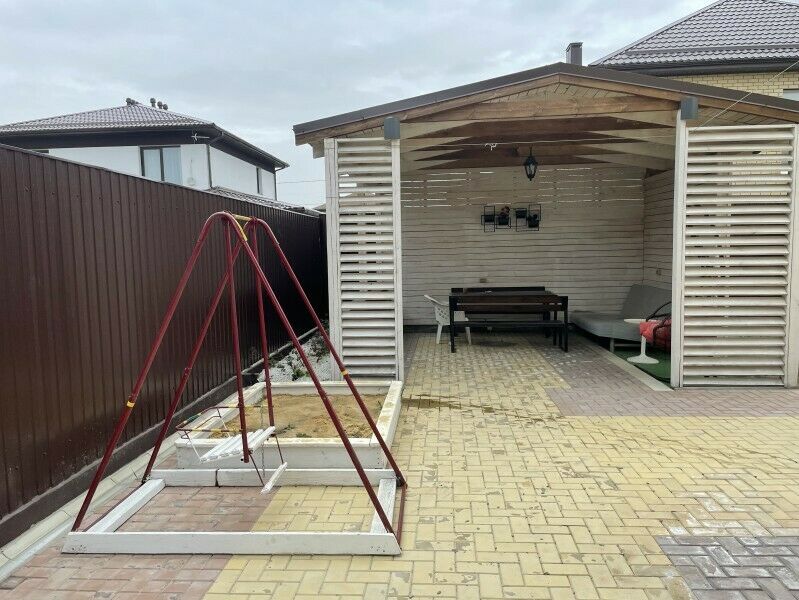 На территории: беседка, зона отдыха, мангал, песочница и качели для детей, газон.