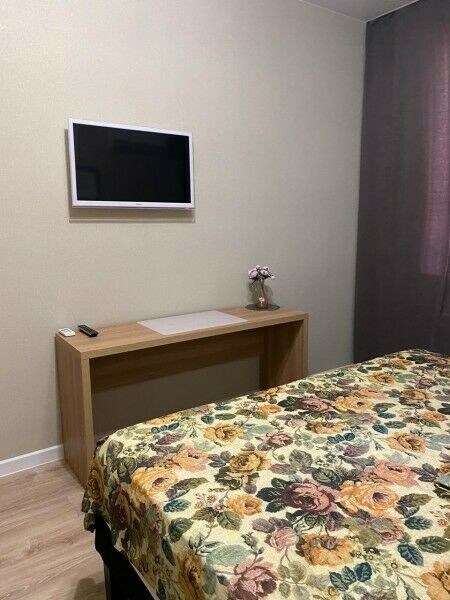 В комнате: двуспальная кровать шириной 1,80х2,0 м с ортопедическим матрасом, удобная софа (полноценное спальное место). Шкаф, письменный стол, стул. Зеркало, прикроватные столики, сплит система. Холодильник, электрочайник, чайный набор. Плазменный телевизор СМАРТ TV, Wi-Fi.