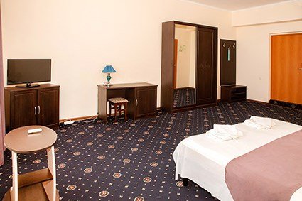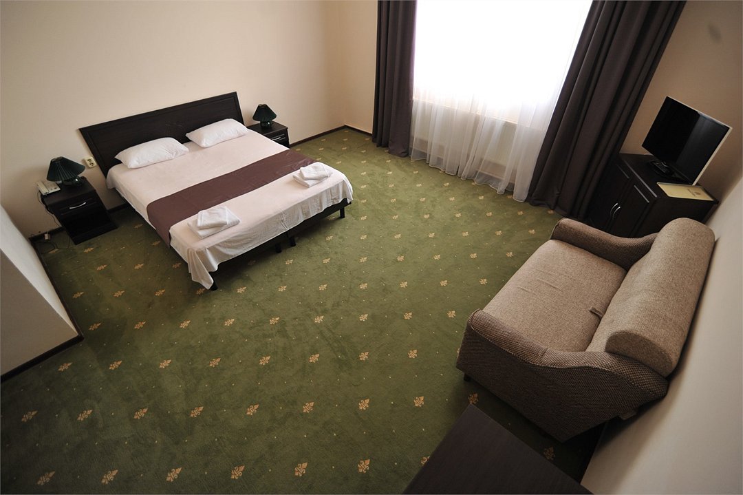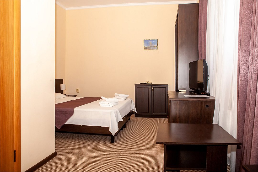 телевизор, Wi-Fi, холодильник, настольные лампы, электронные замки, утюг, душевая кабина, банные полотенца, две односпальные или большая двуспальная кровать, гладильная доска, тумбы, вешалки, журнальный столик, письменный стол, зеркало, унитаз, раковина, ковровое покрытие, отопление, вид на город, кулер на этаже, кресло, высокие потолки, стаканы, стул, туалетные средства, сплит-система, сушилка для белья, диван-кровать, раскладной диван, внутренний телефон, шкаф-купе, номер для некурящих, общественный бассейн, антибактериальное средство для рук, без питомцевВ гостиничном номере