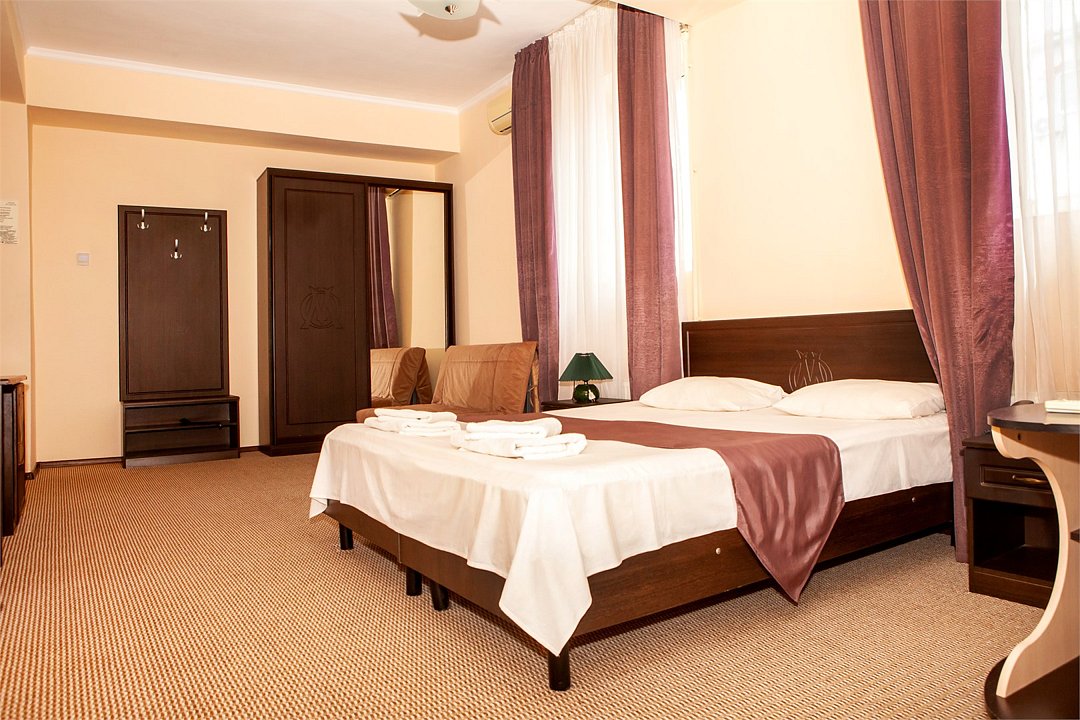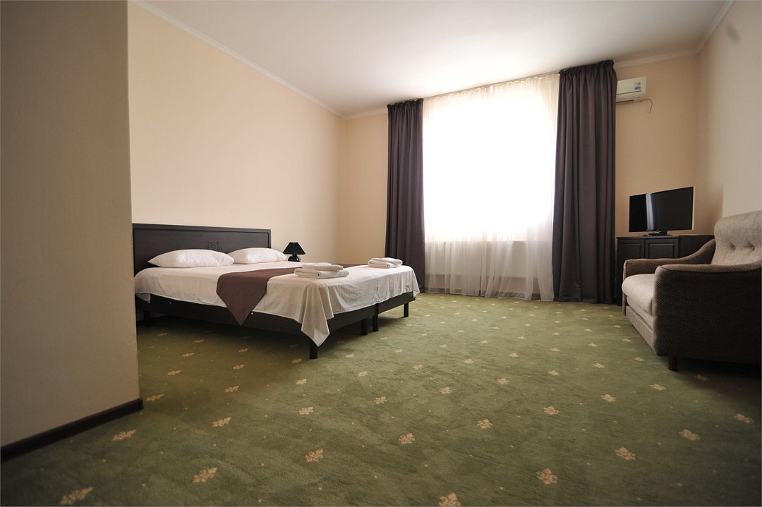 телевизор, холодильник, душ, туалет, кондиционер, мебель, телефон, 19-27 кв.м. ( дополнительным местом является еврораскладушка).Услуги и удобства
