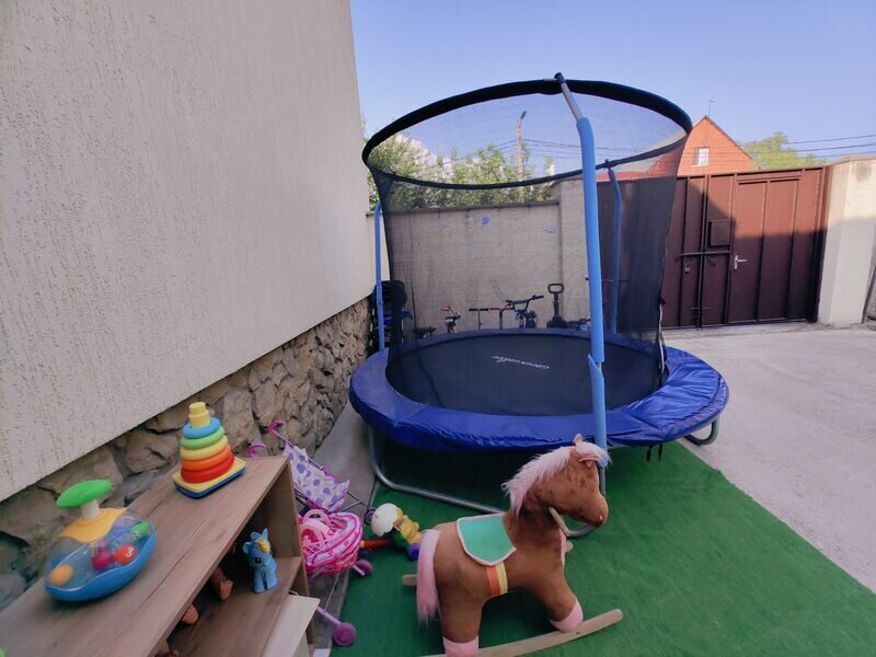 Для детей предусмотрена детская площадка, батут, самокаты и велосипеды для активного отдыха, малыши точно останутся в восторге.