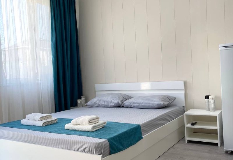 Гостевой дом "МИК" расположен в курортной зоне Анапы, район Джемете. Гостевой дом предлагает своим гостям экологические 4-5-ти местные "Семейные домики" - В номерах: двуспальная кровать, диван раскладной двуспальный, прикроватные тумбочки, стол, стулья, шкаф, зеркало, кухонная гарнитура, обеденная зона. Из удобств: ТВ (цифровое), холодильник, сплит-система, wi-fi интернет, эл. чайник, посуда, фен, общая терраса, уличная мебель, сушилка для белья. Душ и туалет совмещенный в домике.