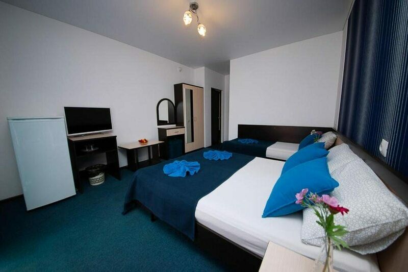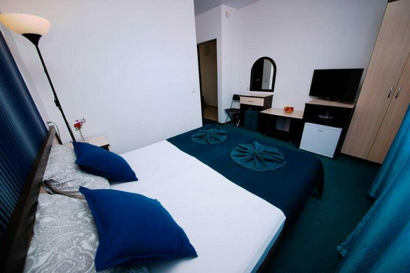 Далее номер: кристальная чистота-уборка каждый день, смена белья, полотенец и генеральная уборка раз в пять дней ; стиль - приятное сочетание белого и синего тонов в цветовой гамме идеально для отдыха на море; пространство-более чем достаточно на семью из 4 человек ; удобные кровати, подушки; идеальная работа всей сантехники!!! ; наличие в номере достаточно объёмного холодильника-идеально, если на рынке берёте фрукты, мороженое и т.п.; телевизор также работал исправно-картинка, звук на 100%.