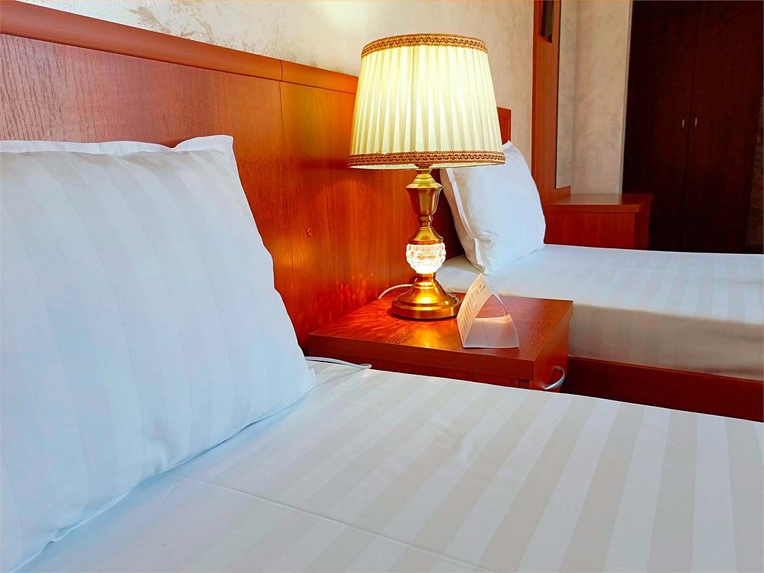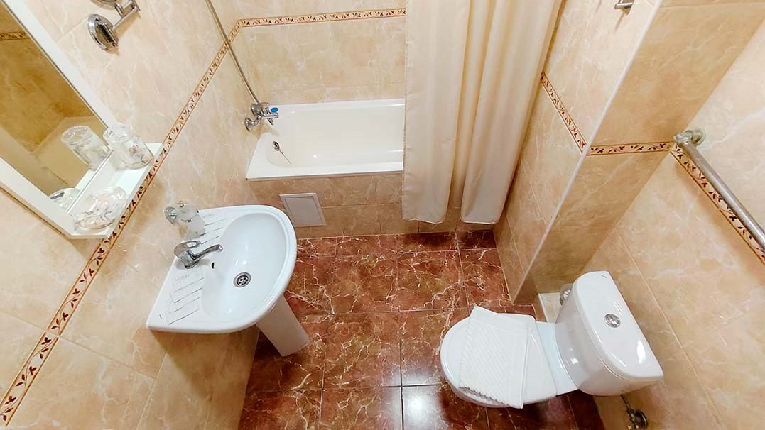 Этот номер предоставляет каждому гостю личное спальное место — две удобные односпальные кровати — и создает все условия для комфортного отдыха и продуктивной работы. В вашем распоряжении: Для отдыха: Две односпальные кровати, мягкий диван для релаксации, телевизор, кондиционер, прикроватные тумбы. Для работы и удобства: Письменный стол со стулом, журнальный столик, бесплатный высокоскоростной Wi-Fi, холодильник, чайник, просторный шкаф и зеркало. В собственной ванной комнате: Комплект пушистых полотенец, фен, косметическое зеркало, базовые туалетные принадлежности и тапочки.Услуги и удобства