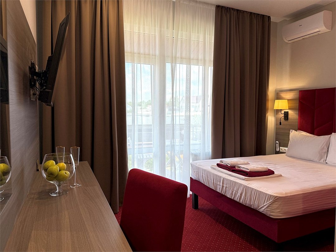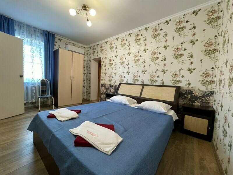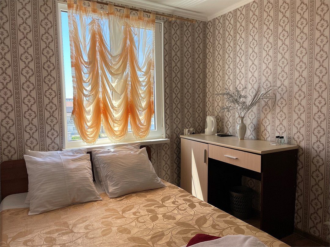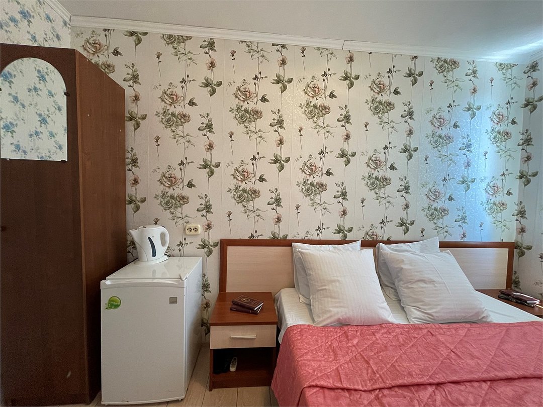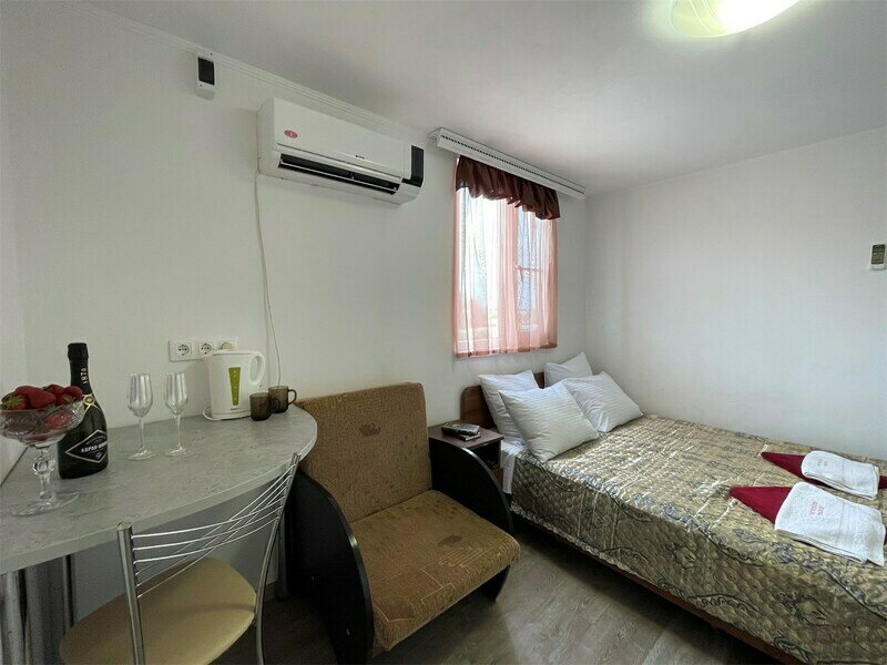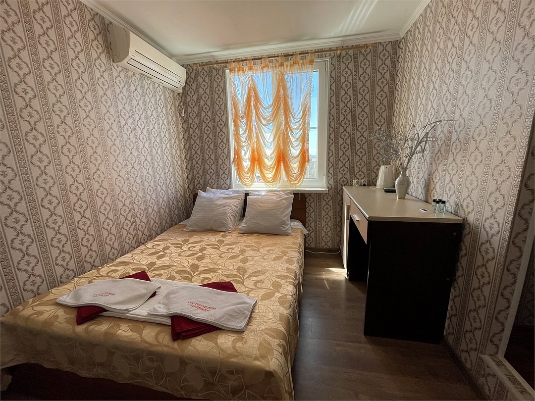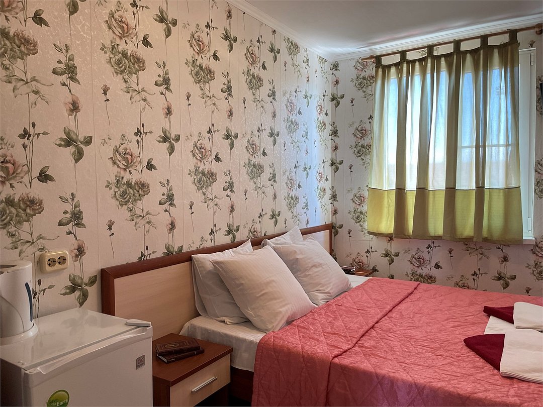Wi-Fi, банные полотенца, пляжные полотенца, двуспальная кровать, гипоаллергенное белье, ортопедический матрас, шкаф для одежды, вешалки, зеркало, чайник, вид на город, общая ванная комната, стул, стол, тумба, туалетные средства, санузел на этаже, сплит-система, цифровое тв, телевизор с плоским экраном, мини-холодильник, москитная сетка, душ на этаже, номер для некурящихВ номере