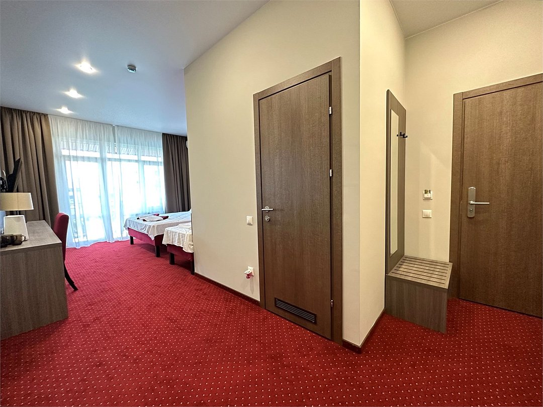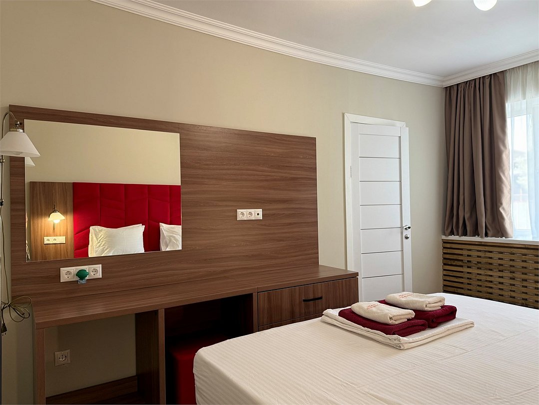 Светлый однокомнатный номер площадью 20 кв.м выполнен в современном стиле. Большие панорамные окна визуально делают пространство свободнее, а плотные шторы с эффектом blackout позволяют насладиться здоровым сном. Номер оснащен всей необходимой техникой и мебелью для комфортного семейного отдыха.Услуги и удобства