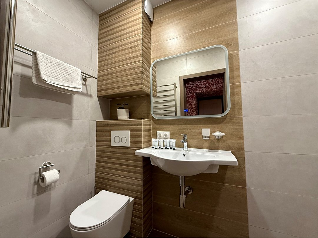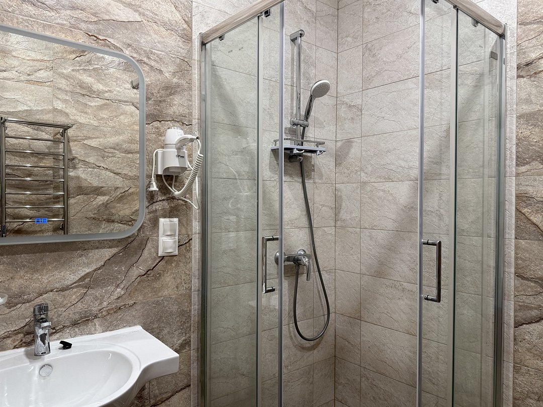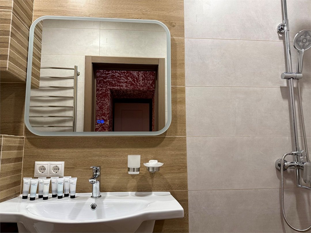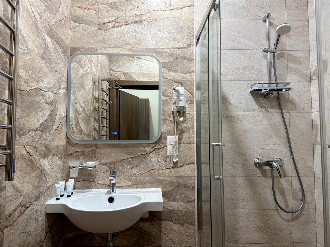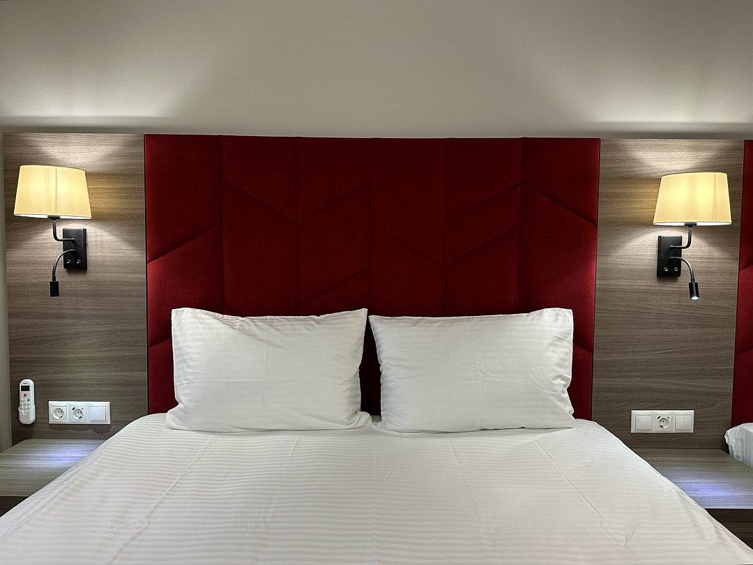 Двухместный номер с 1 кроватью - это однокомнатный номер площадью 15 кв.м. В номере одна двуспальная кровать, кресло-кровать, ж/к телевизор с цифровыми каналами, сплит-система, платяной шкаф, электрический чайник и чайная пара. В ванной комнате душ и все необходимые принадлежности.Услуги и удобства