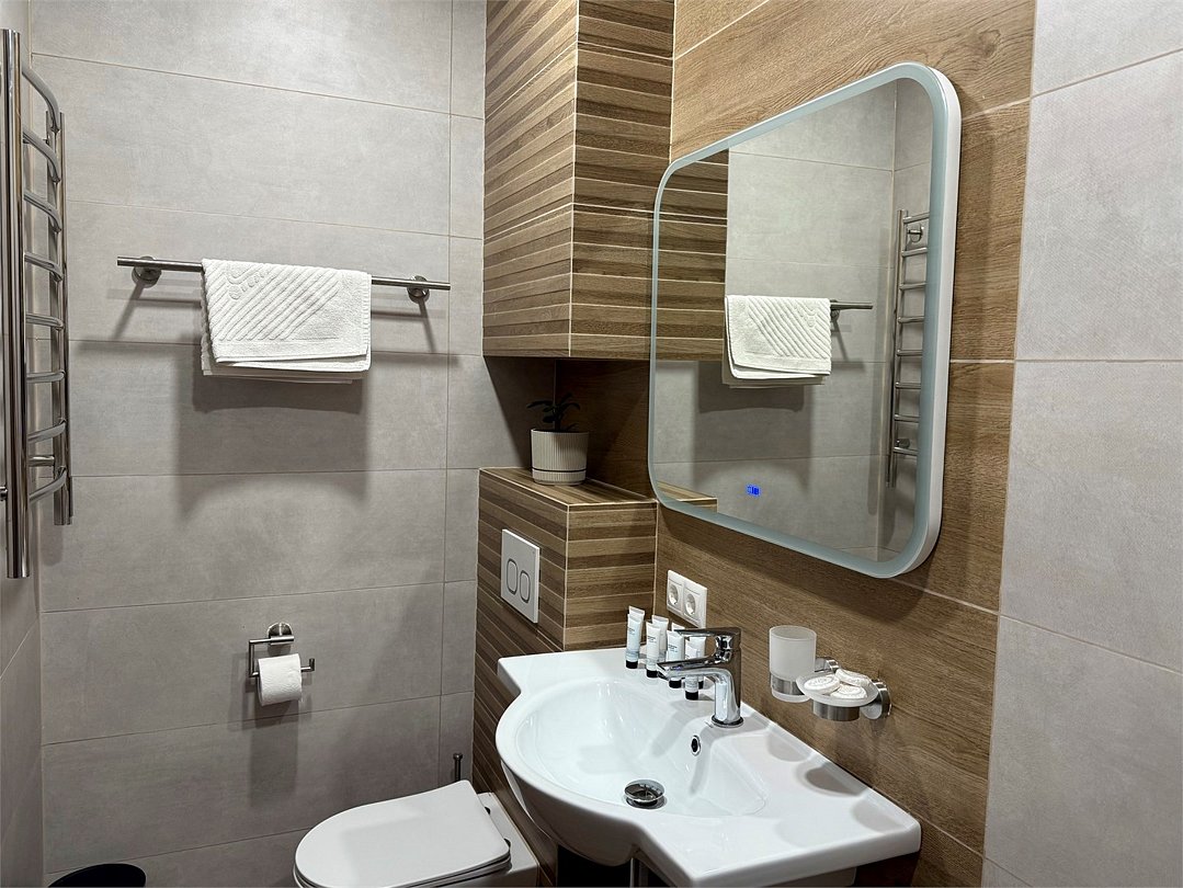 Апартамент - это номер со всеми необходимыми удобствами, площадь которого составляет 45 кв.м. Идеально подходит для проживания большой семьи или компании друзей, предпочитающей комфорт и домашний уют.Услуги и удобства