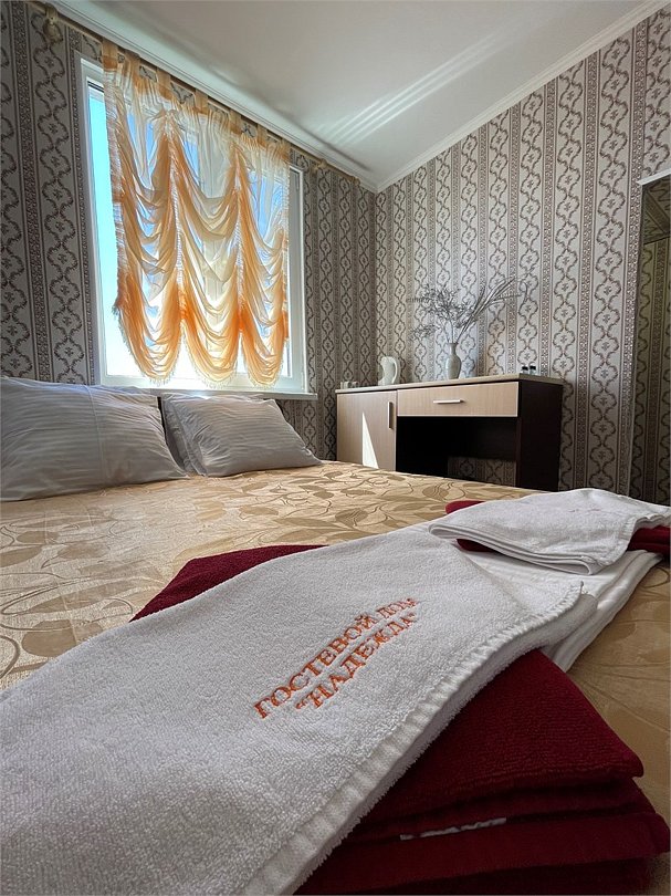 Гостевой дом «Надежда» находится в станице Благовещенской, в 0,5 км от аквапарка «Ласковый берег». Туристам предоставляются следующие услуги: wi-fi, частная парковка, доступ в сад и на террасу для отдыха на свежем воздухе. Для детей установлена площадка, есть игровая комната. За дополнительную плату организовывается трансфер.