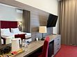 Светлый однокомнатный номер площадью 26 кв.м выполнен в современном стиле. Большие панорамные окна визуально делают пространство свободнее, а плотные шторы с эффектом blackout позволяют насладиться здоровым сном. Номер оснащен всей необходимой техникой и мебелью для комфортного семейного отдыха.Услуги и удобства
