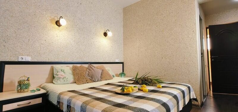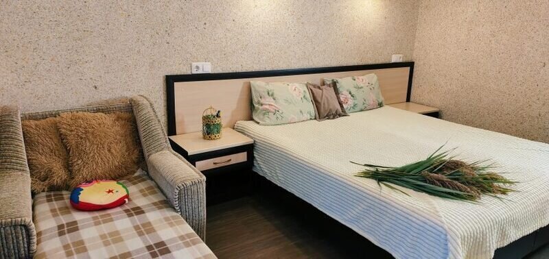 1-ая спальная комната: двуспальная кровать, кресло -кровать, прикроватные тумбочки, журнальный столик шкаф, ТВ, кондиционер.