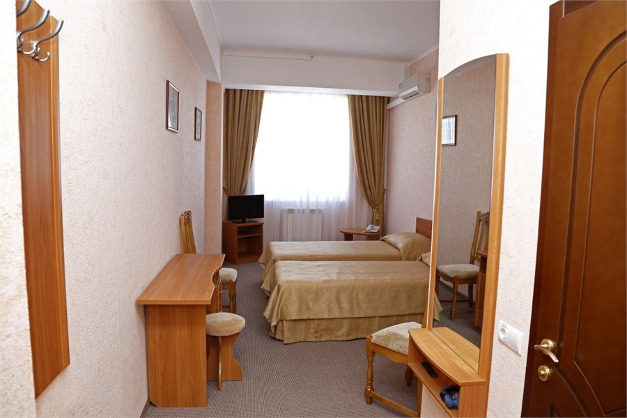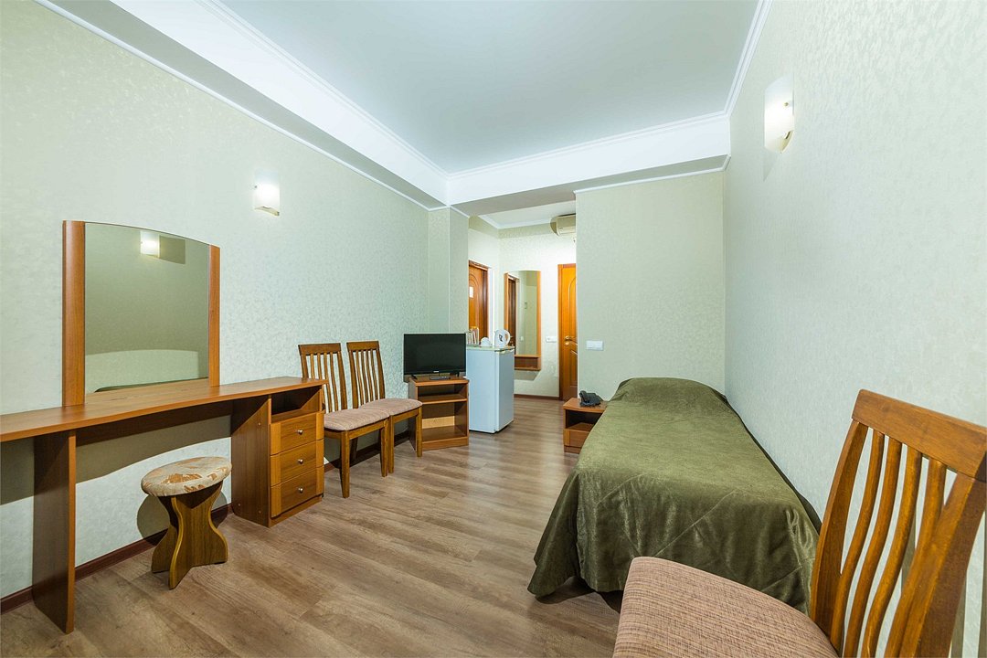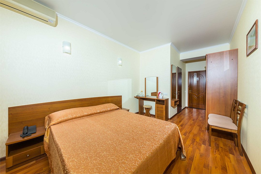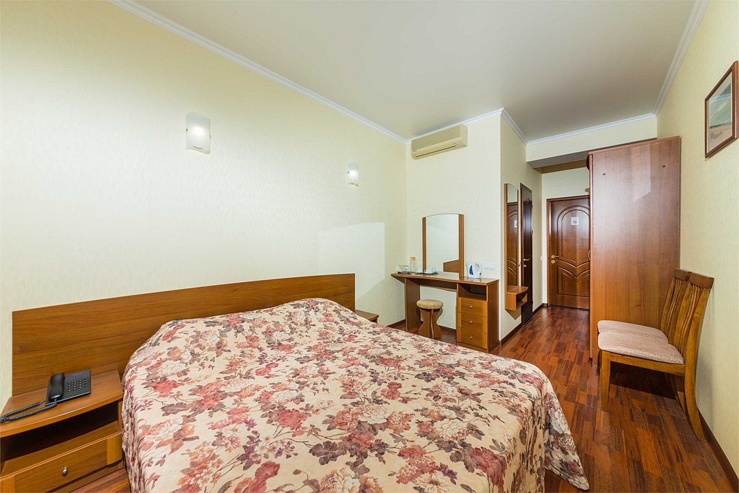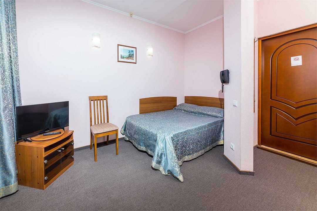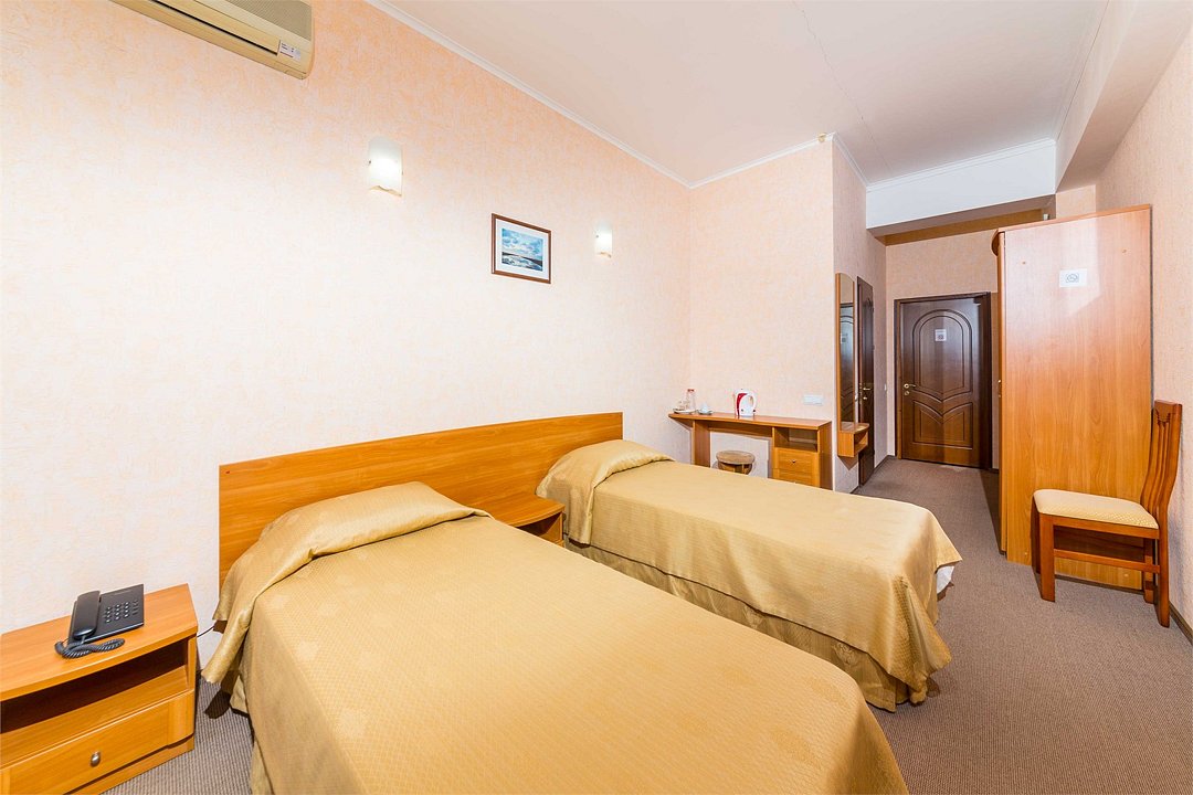 Номер оснащен сплит - системой, телефоном, телевизором, холодильником, отопительным радиатором (с регулировкой степени нагрева), феном. В номере есть санузел, оборудованный душем. Предусмотрены комплекты из трех полотенец (на каждого проживающего), гигиенические наборы. В номере есть балкон.Услуги и удобства