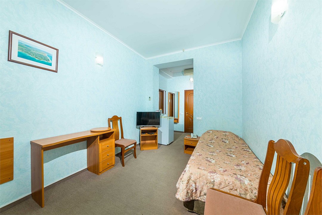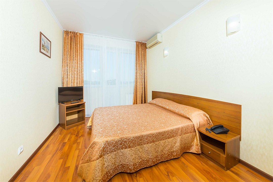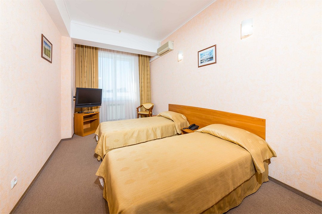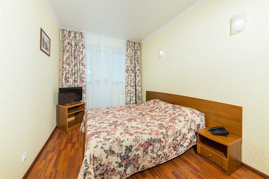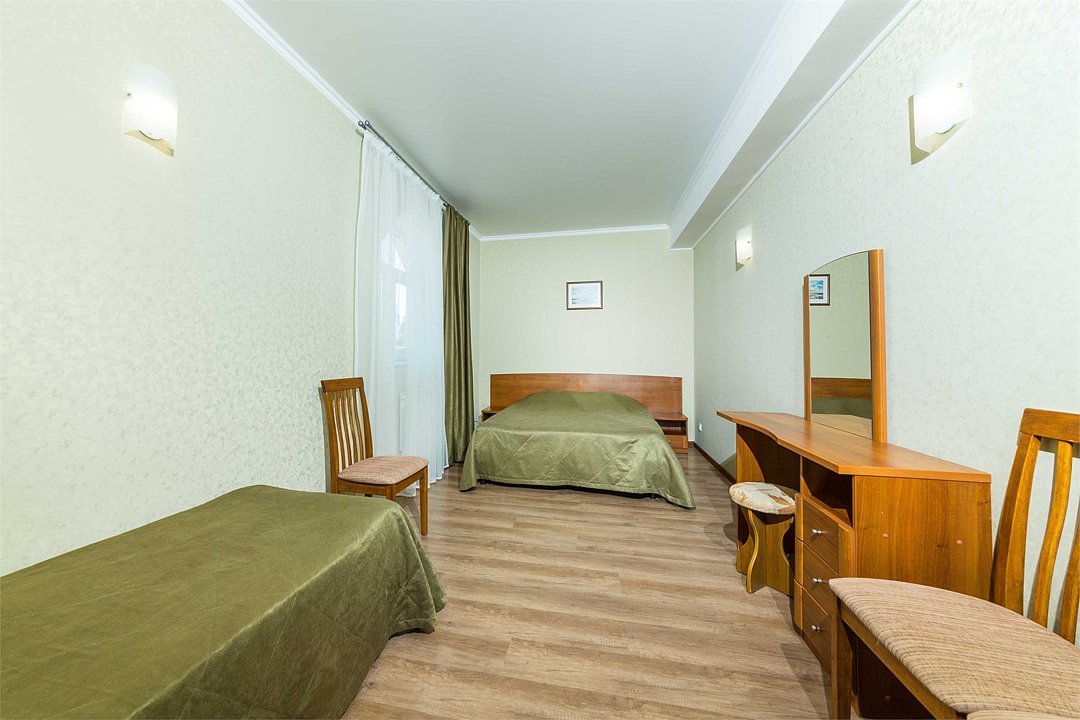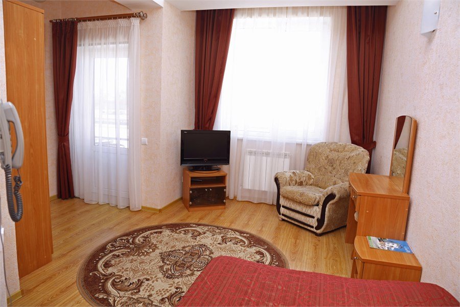 Номер оснащен сплит - системой, телефоном, телевизором, холодильником, отопительным радиатором (с регулировкой степени нагрева), феном. В номере есть санузел, оборудованный душем. Предусмотрены комплекты из трех полотенец (на каждого проживающего), гигиенические наборы. В номере есть балкон.Услуги и удобства