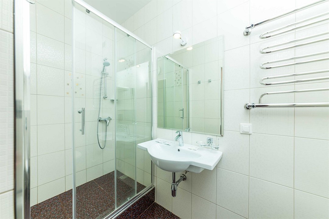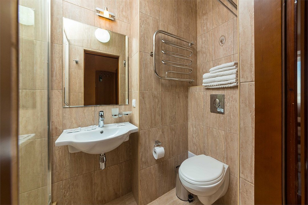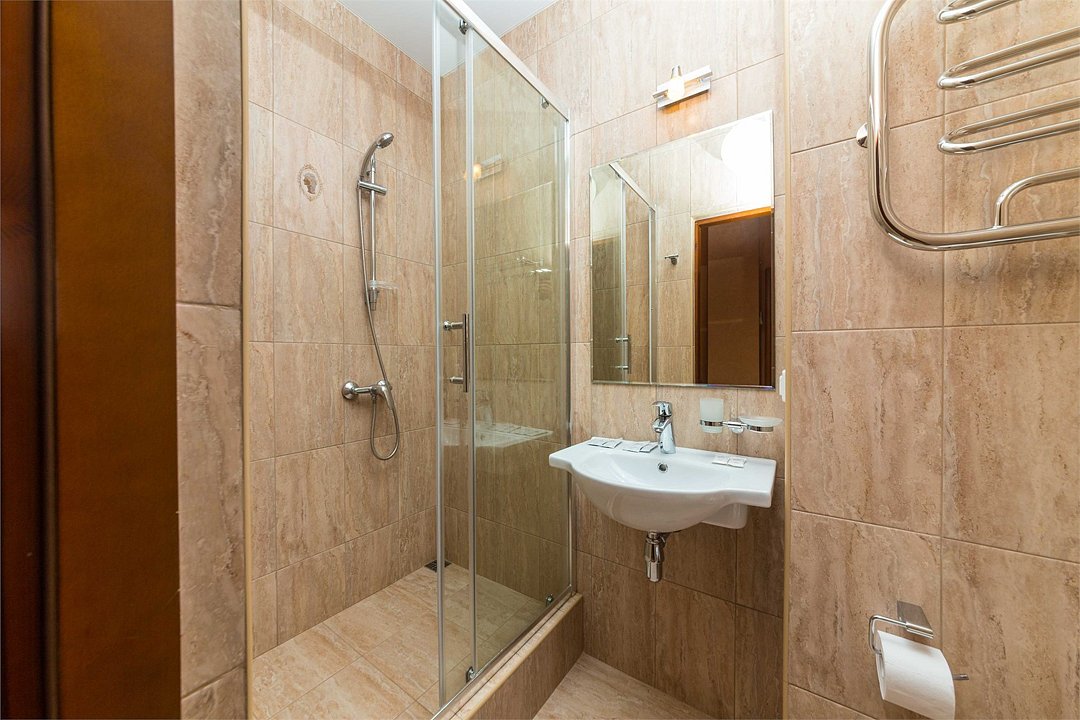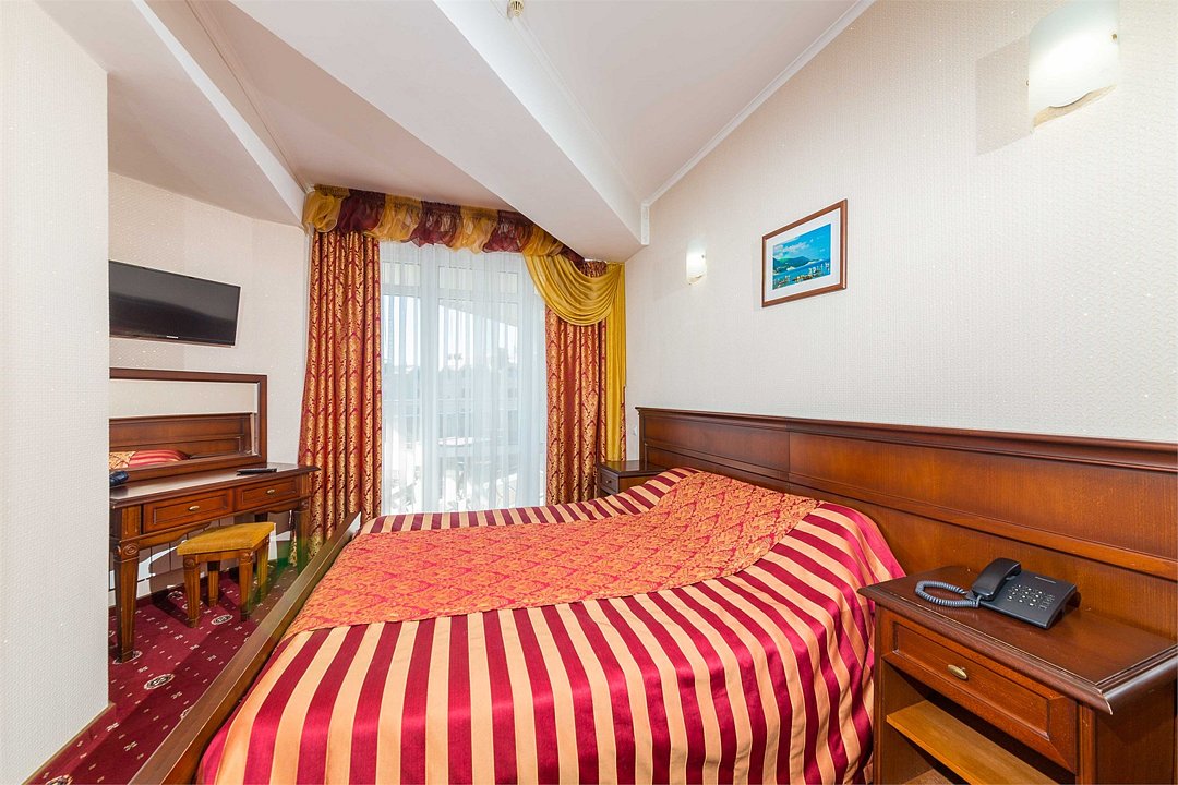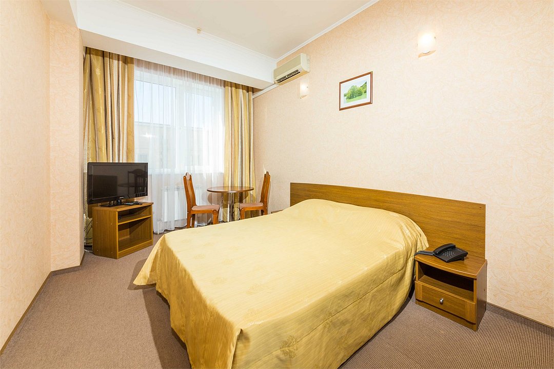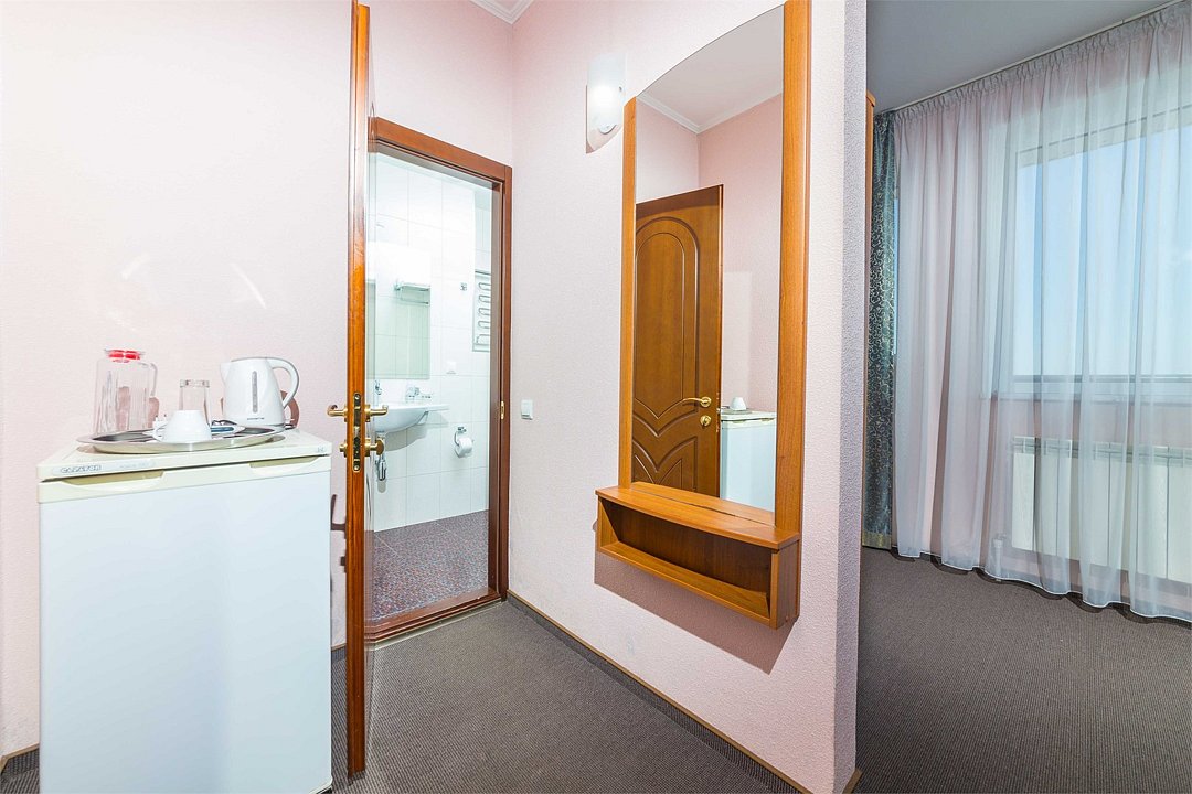 Номер оснащен сплит - системой, телефоном, телевизором, холодильником, отопительным радиатором (с регулировкой степени нагрева), феном. В номере есть санузел, оборудованный душем. Предусмотрены комплекты из трех полотенец (на каждого проживающего), гигиенические наборы. В номере есть балкон.Услуги и удобства