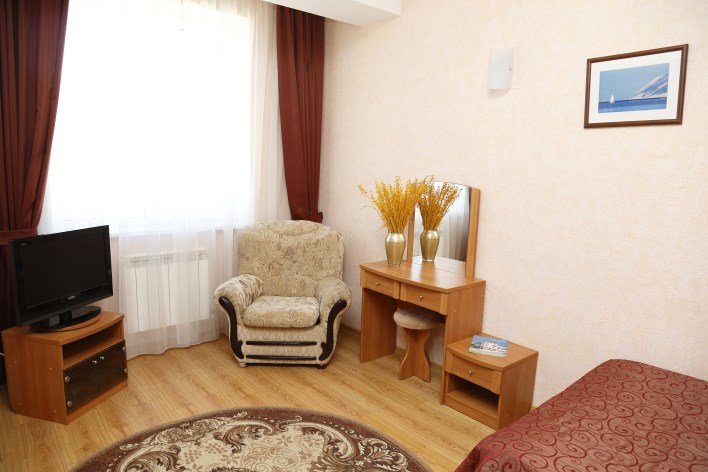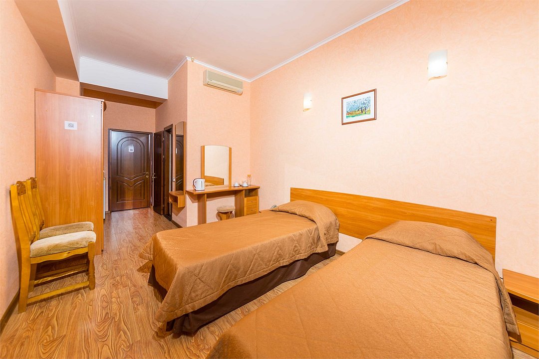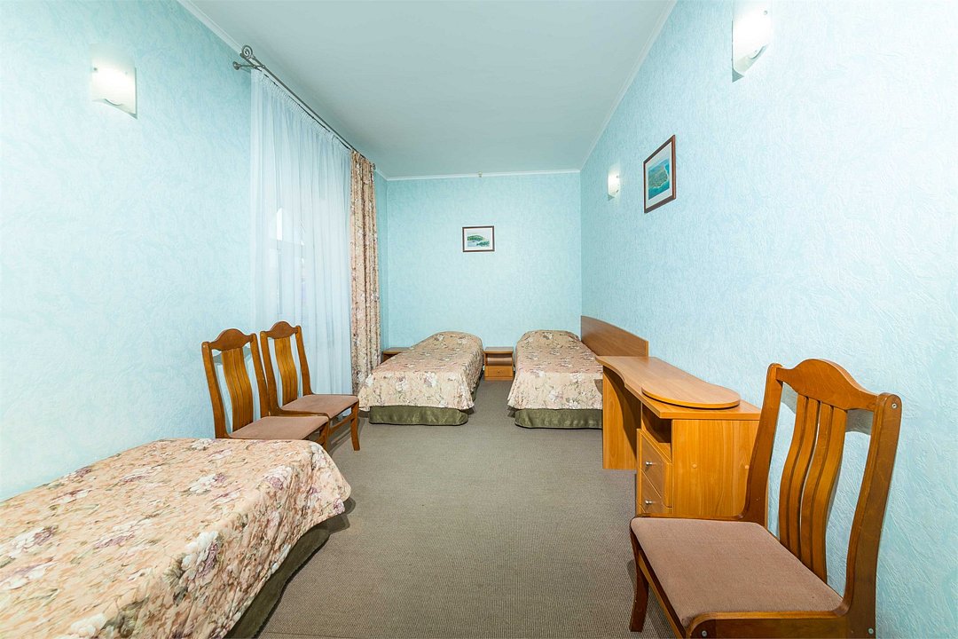 Четырехэтажное здание отеля может принять до 60 человек. Интерьер номеров в пастельных тонах создает домашний уют. Мебель и бытовая техника обеспечивают максимальный комфорт: можно пользоваться сплит-системой, холодильником, телефоном и телевизором, Wi-Fi, электрочайником с набором чайной посуды.