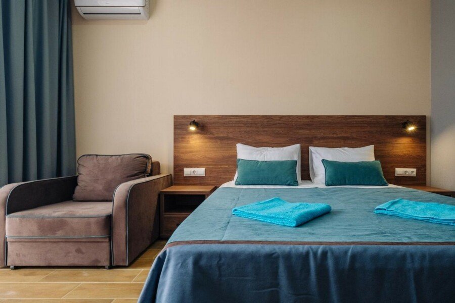 Современный дизайн и яркий декор придают отелю стильный и притягательный вид. Все номера оснащены просторными кроватями и кондиционерами, что обеспечивает максимальное удобство после насыщенных курортных дней. На территории отеля располагается открытый бассейн с расслабляющей зоной, где можно освежиться под солнечными лучами.