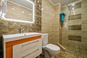 Улучшенный однокомнатный номер площадью 34 м² с видом во двор. Подходит для размещения 5 человек (2 основных места и 3 дополнительных). Имеет спальню с приятным интерьером.