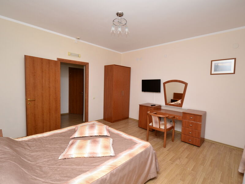 ДостоинстваОтдыхали всей семьей. Взяли двухэтажный люкс. Питание – полупансион. В каждой комнат есть телевизор и кондиционер, хорошая мебель. Бассейн на территории присутствует. Дети там целыми днями сидели. Кормят хорошо, порции большие. Расположение достаточно удачное. Соотношение цена-качество идеальное.