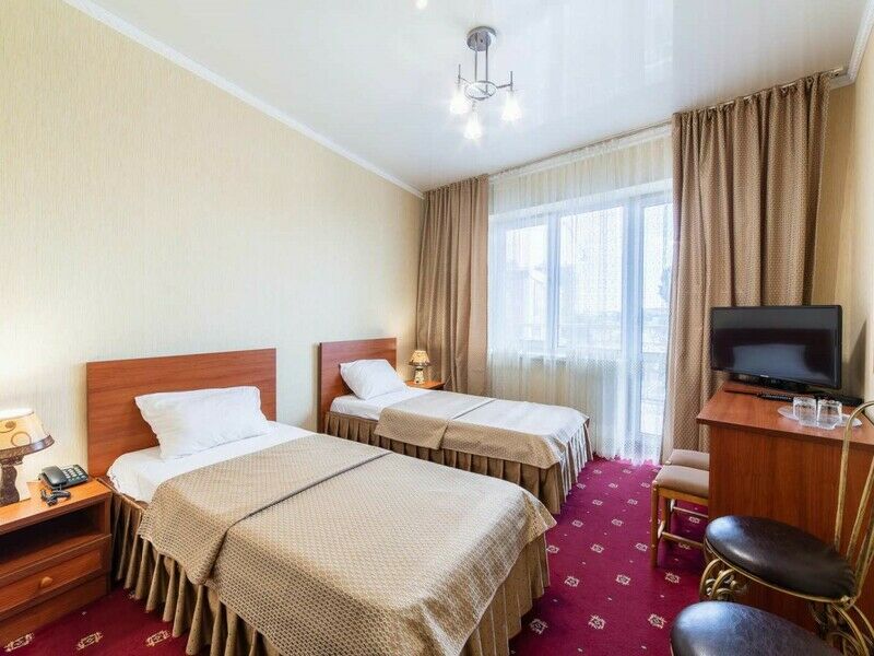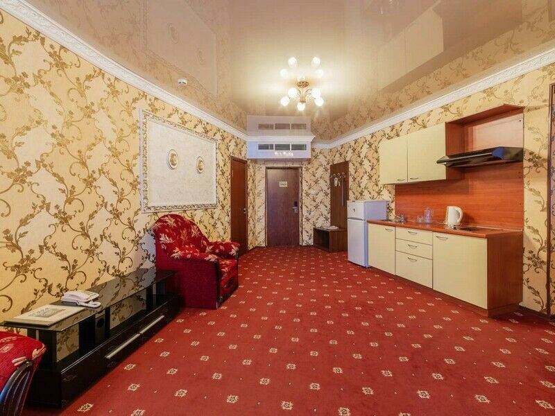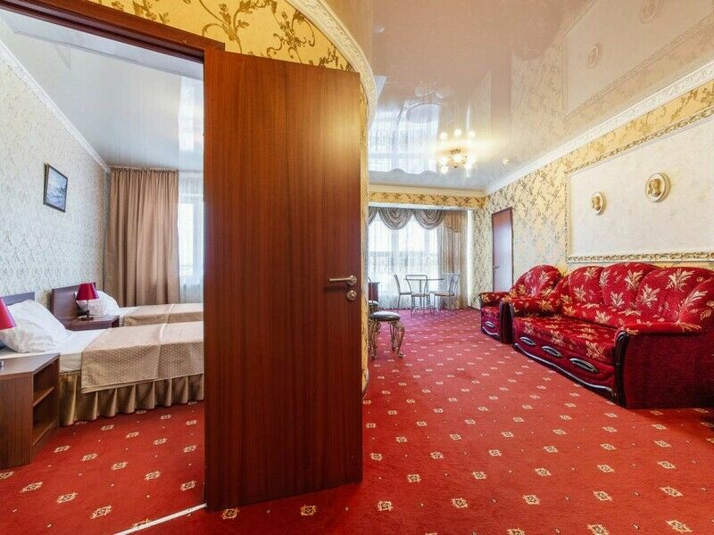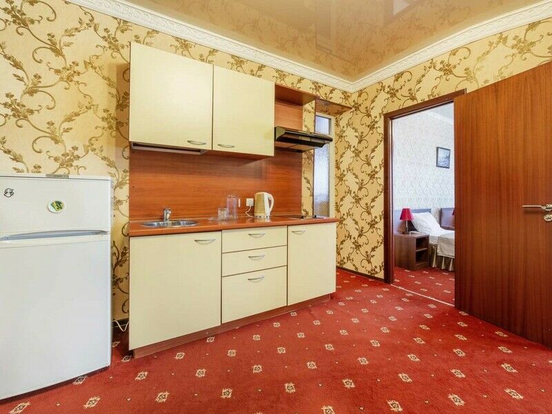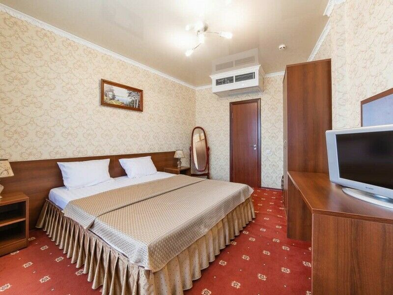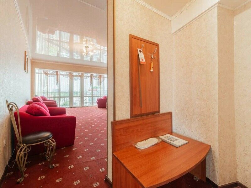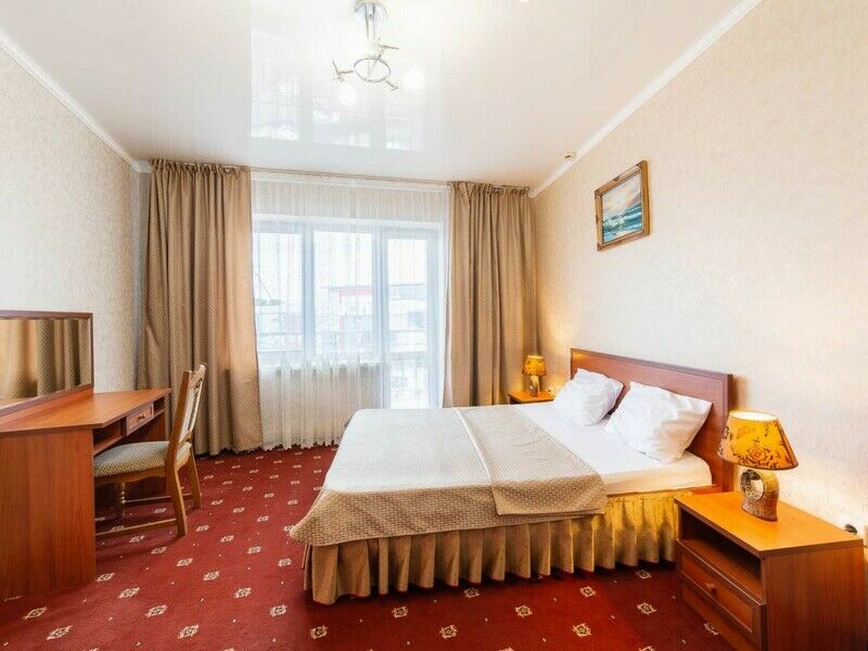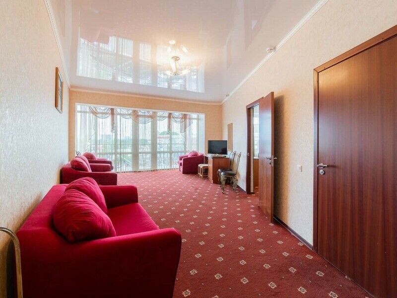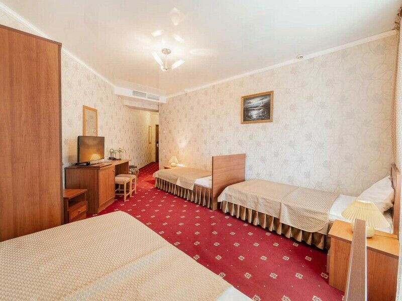 Здание состоит из пяти этажей. В нем может одновременно проживать 80 отдыхающих. Жилой фонд представлен номерами трех категорий: стандарт, апартаменты, люкс. Они декорированы в приятных теплых тонах. Во всех номерах есть санузлы, душевые кабины, кондиционеры, телевизоры и другая необходимая для комфортного проживания техника.