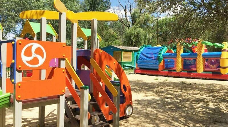 Хорошо развита инфраструктура для юных гостей. На территории организованы детская площадка, небольшой бассейн, есть батут и игровая комната. Малышам предоставляются кроватки-манежи и стульчики для кормления. Регулярно устраиваются детские дискотеки, работают аниматоры.