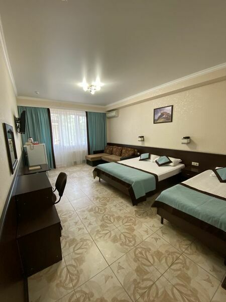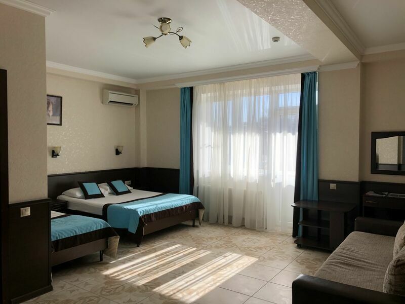 Современное здание, которое было построено в 2013 году, которое расположено в самом центре города-курорта Анапы, рядом с развитой инфраструктурой, в 500 метрах от моря. Рядом с гостевым домом расположились такие интересные места как: Театральная площадь, Городской парк, Аквапарк "Золотой пляж", центральный Универмаг и Летняя эстрада. До песчаного пляжа дорога занимает 10 минут пешей прогулки, а до галечного 15 минут.