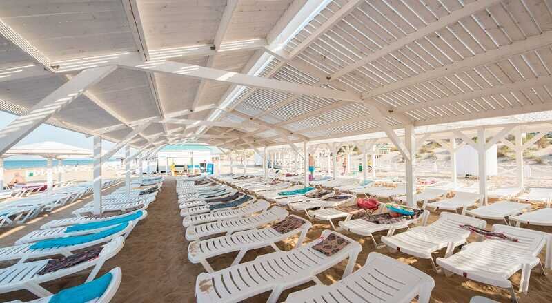 Инфраструктура: лежаки, зонтики, шезлонгиПесчаный пляж