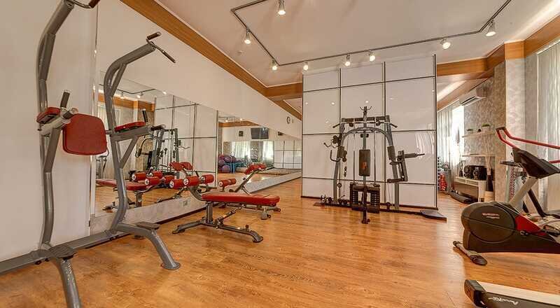 Оборудованный тренажерный зал для занятия силовыми упражнениями.