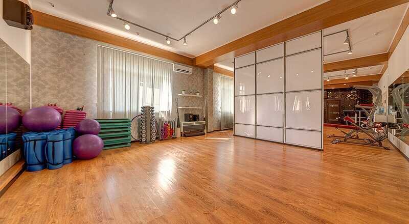 Читать полностьюОборудованный тренажерный зал для занятия силовыми упражнениями.