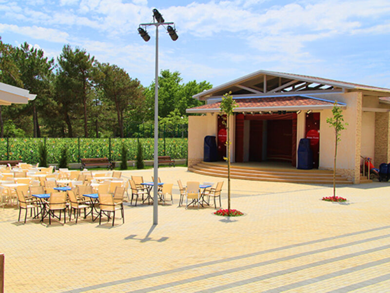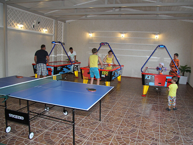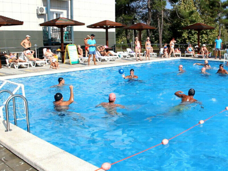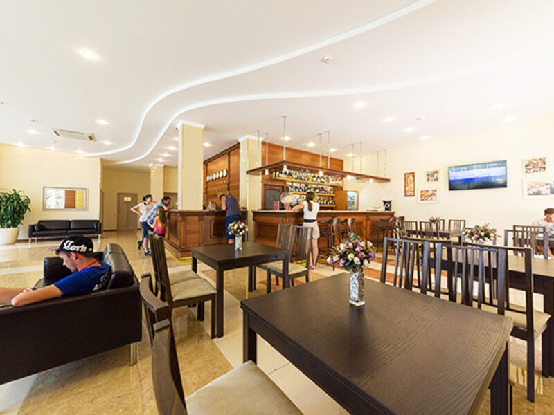 Питание гостей организовано три раза в день в столовой пансионата. В зале питания есть стульчики для кормления малышей. К услугам гостей – сезонный бассейн и детский, оба подогреваемые и окруженные релакс-зоной, имеется бар. Также на территории пансионата работает банный комплекс, массажный и косметологический кабинеты, салон красоты. Для любителей активного отдыха работают тренажерный зал и спортзал. Для маленьких гостей отеля оборудован игровой городок, есть детская комната с воспитателем игровые автоматы. Анимационные мероприятия для детей и взрослых проводятся регулярно.