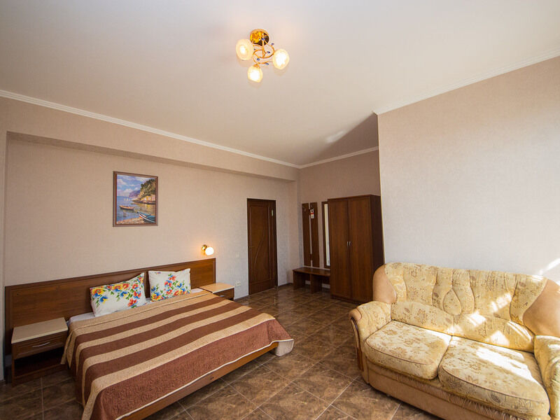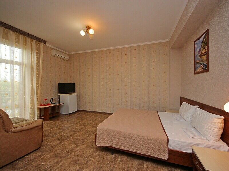 Четырехэтажное здание гостевого дома способно вместить в себя до 50 гостей. Номера оборудованы необходимой мебелью и бытовой техникой, собственной ванной комнатой. К услугам гостей - открытый бассейн со специальным детским отделением и небольшой зоной отдыха, сеть wi-fi на всей территории отеля. Для маленьких гостей организована игровая площадка, работают аниматоры, можно взять напрокат детскую кроватку. В 10 минутах ходьбы от гостевого дома расположен обустроенный городской пляж.