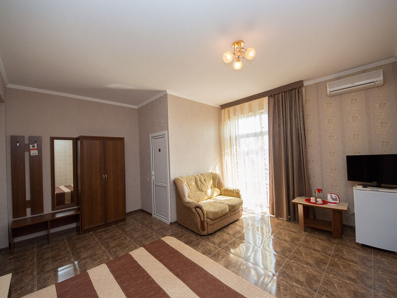Путешествие с семьейОтличный гостевой домОтличный гостевой дом, хорошие хозяева, вежливые, стараются во всех вопросах помочь, труд,имя как пчёлки, спасибо вам за хороший отпуск, вкусную еду!!!!! Гостевой дом находится относительно не далеко от моря, 15 минут очень медленным шагом. Парковка для авто находится на территории дома или за воротами, столовая на цоколе дома, с очень вкусной, по домашнему, едой, с приемлемыми ценными, не дороже, чем в других столовых поселка. В номере стандарт, все как описано, кондиционер, ТВ, чайник, две кружки, тапочки, сан узел, разовые шампунь и гель, балкон в каждом номере. На этаже утюг и гладильная доска. Во дворе бассейн достаточно вместительный и теплый, во дворе также зона отдыхас мини баром. Нам все понравилось, все супер! Спасибо!