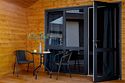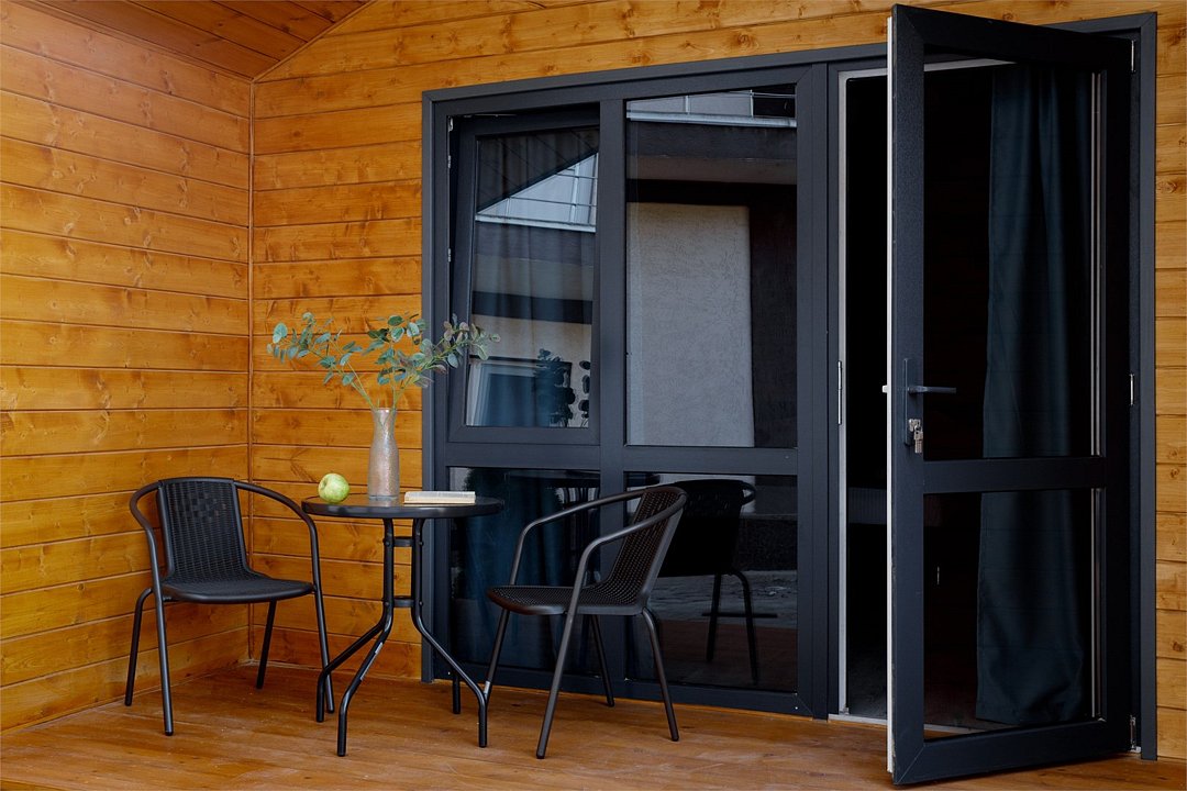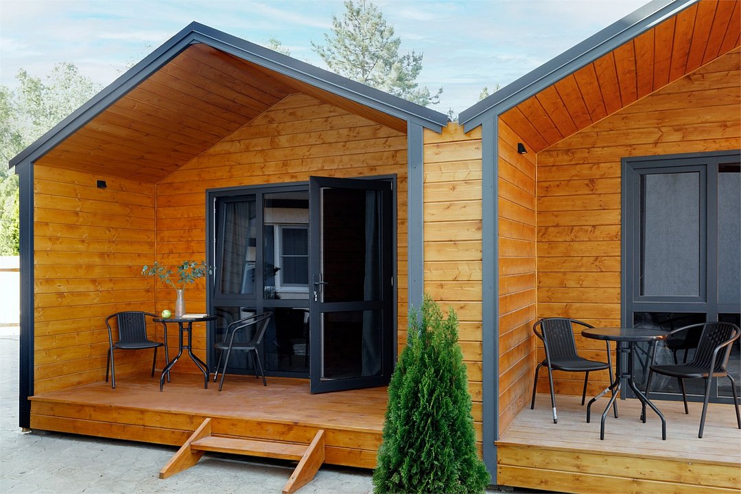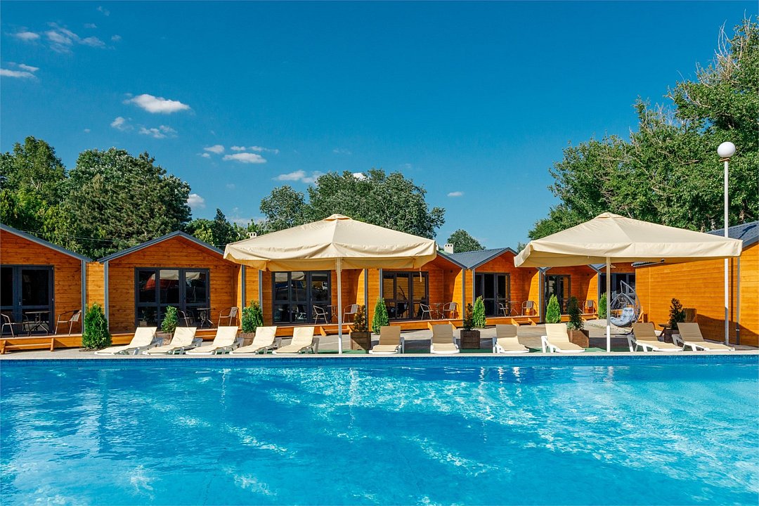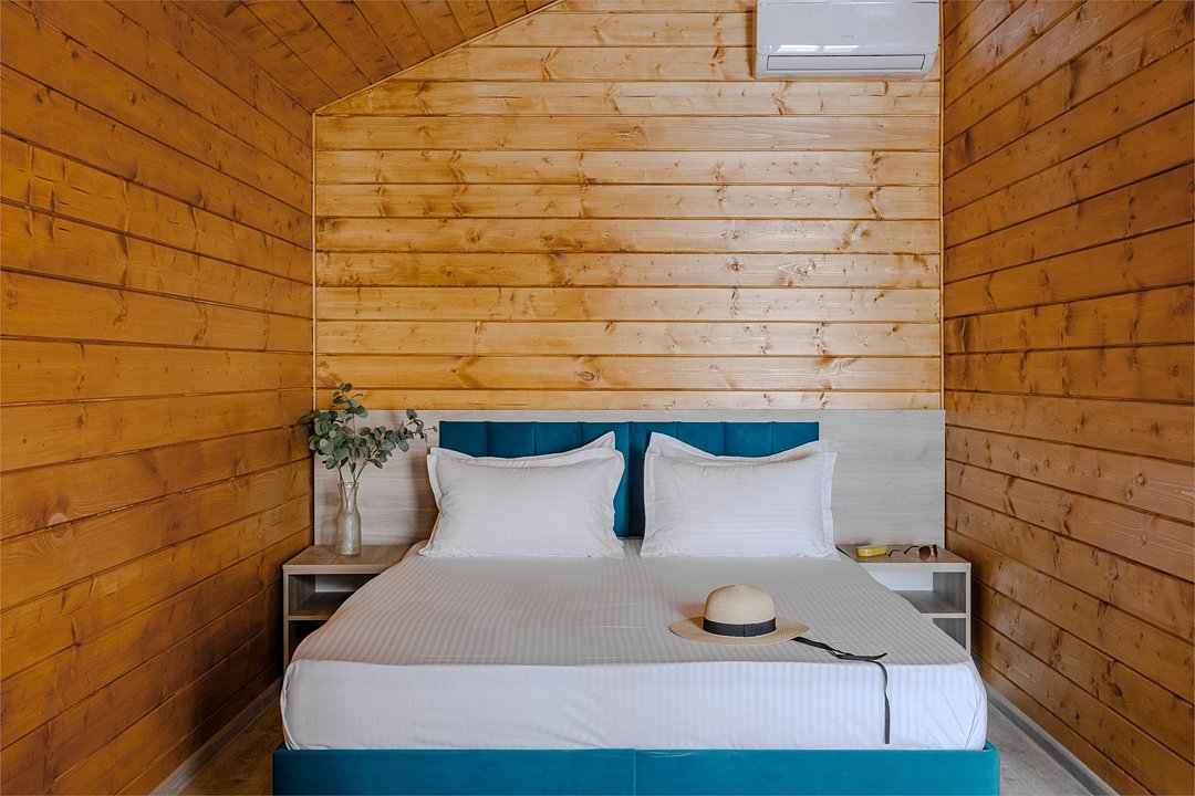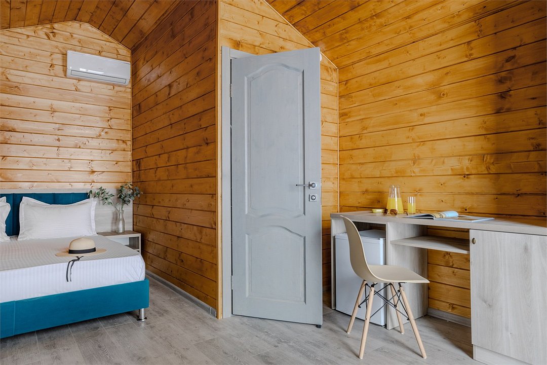 Летние домики 23 квадратных метров. Спальные места в домике представлены: одной двуспальной кроватью и двуспальным диваном. В номере есть: Wi-Fi, сплит-система, стол, современный телевизор и холодильник. Домик оснащен собственной ванной комнатой с душем, туалетом и косметическими принадлежностями.Услуги и удобства