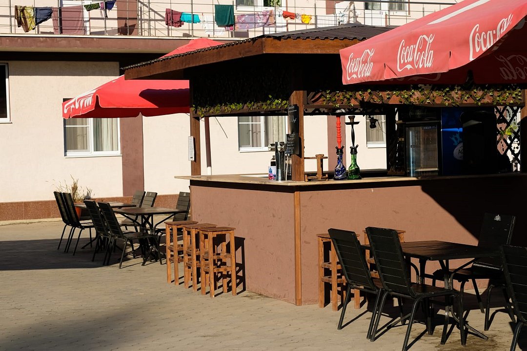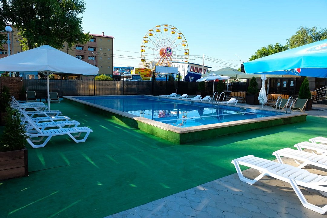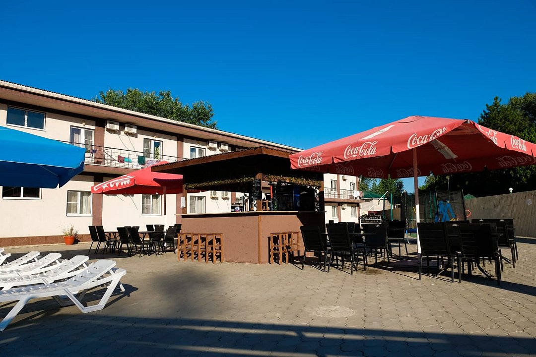 В отеле для гостей работает кафе, есть открытый подогреваемый бассейн с детским отделением, автовладельцы могут оставить машину на охраняемой парковке возле корпуса. Два раза в неделю в отеле устраиваются анимационные представления, во дворике для детей организована игровая площадка с качелями. А до благоустроенного пляжа можно дойти за 5—7 минут.
