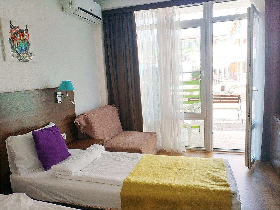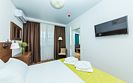 Однокомнатный номер с одной двуспальной кроватью (1,6 м) + 2 односпальные кровати (или кресло-кровати). Номер подходит для семьи из 4-х человек.Услуги и удобства