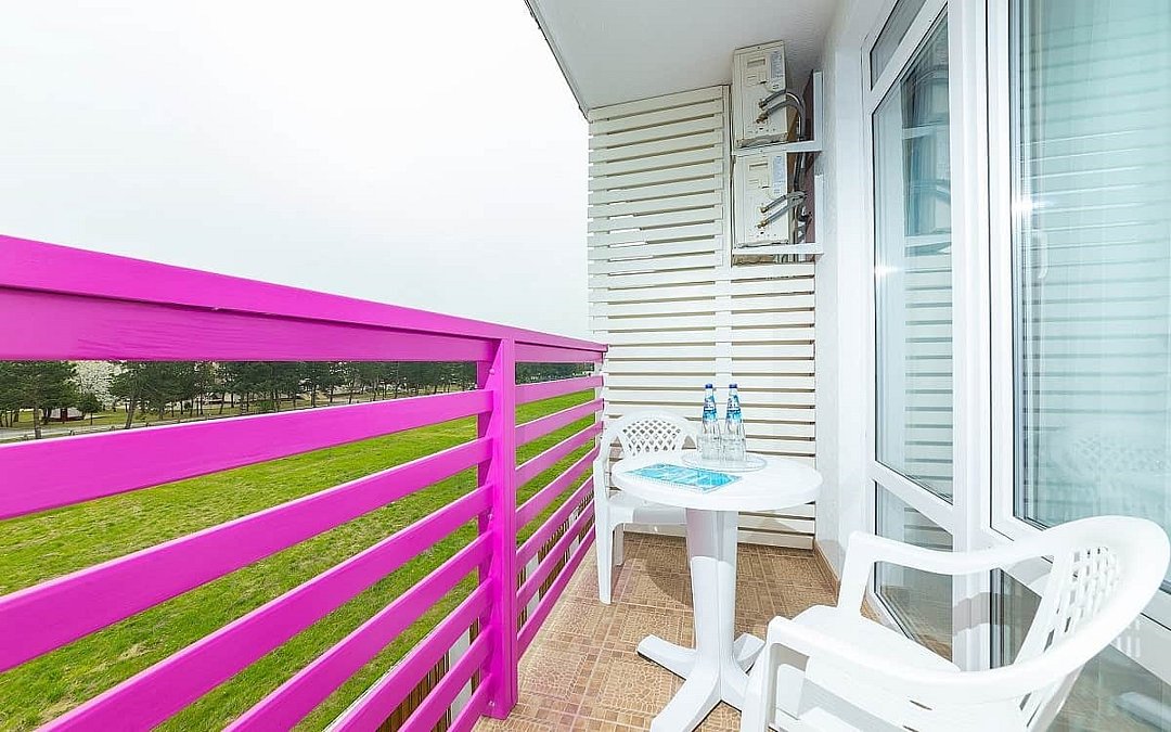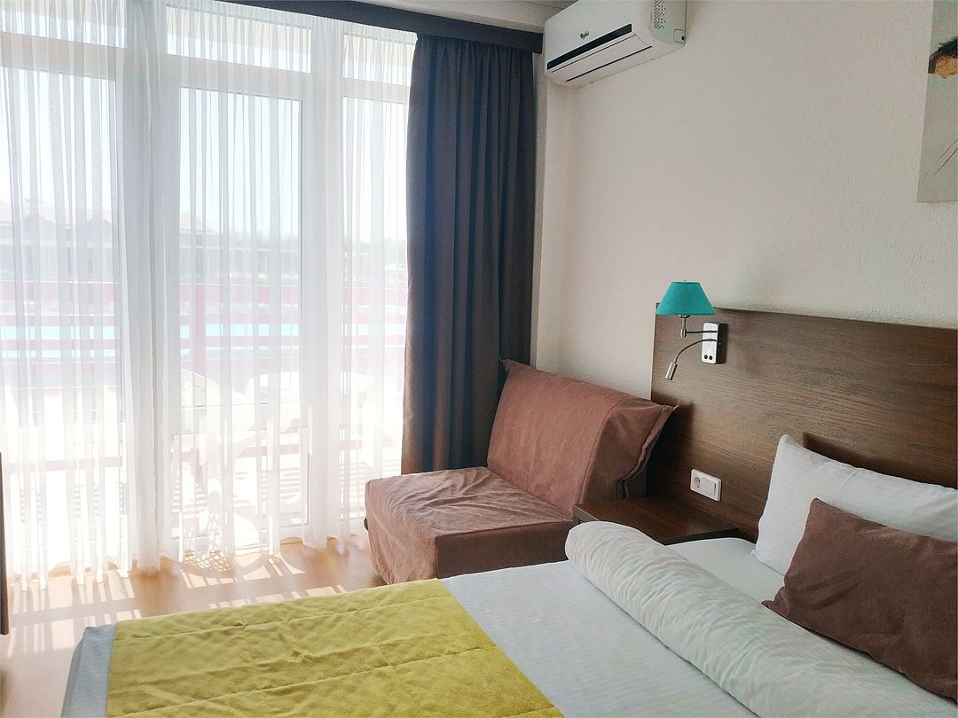 кабельное телевидение, Wi-Fi, IP-телефон, кондиционер, светильник, настольные лампы, фен, электронные замки, ванная комната, ванна, ванна или душевая кабина, санузел, банные принадлежности, банные полотенца, пляжные полотенца, косметические средства, балкон, две односпальные кровати, гипоаллергенное белье, ортопедический матрас, шкаф для одежды, гардеробная, вешалки, багажная тумба, зеркало, звуконепроницаемые стены и окна, сейф, раковина, кулер на этаже, ламинат, стаканы, стул, туалетные средства, туалет, раскладное кресло, внутренний телефон, телевизор с плоским экраном, мини-холодильник, номер для некурящих, USB-порт, рабочий стол, общественный бассейн, кресло-кровать, услуги прачечной (платно), мылоВ гостиничном номере