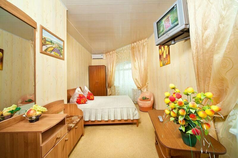 Для вашего размещения гостевой дом предлагает большой выбор номеров, каждый с которых оригинален и неповторим по своему дизайну. В номере вы найдете все для комфортного отдыха. На территории также есть бассейн, в котором гости смогут отдыхать в любое, удобное им время. Возле бассейна размещена зона отдыха со столиками и лавочками. Питаться вы сможете в кафе по близости, где вкусно готовят за небольшие деньги.