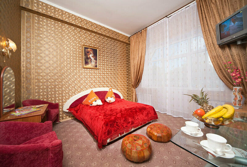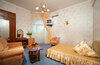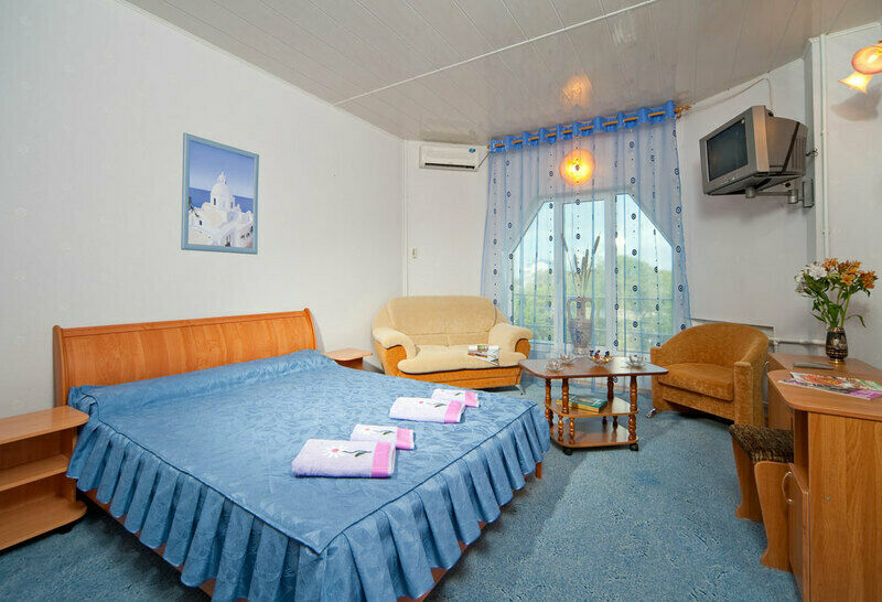 В номере: двуспальная кровать + мягкий двуспальный диван, телевизор, мини-бар, сплит-система, сейф, фен, набор посуды, без балкона, санузел с ванной.