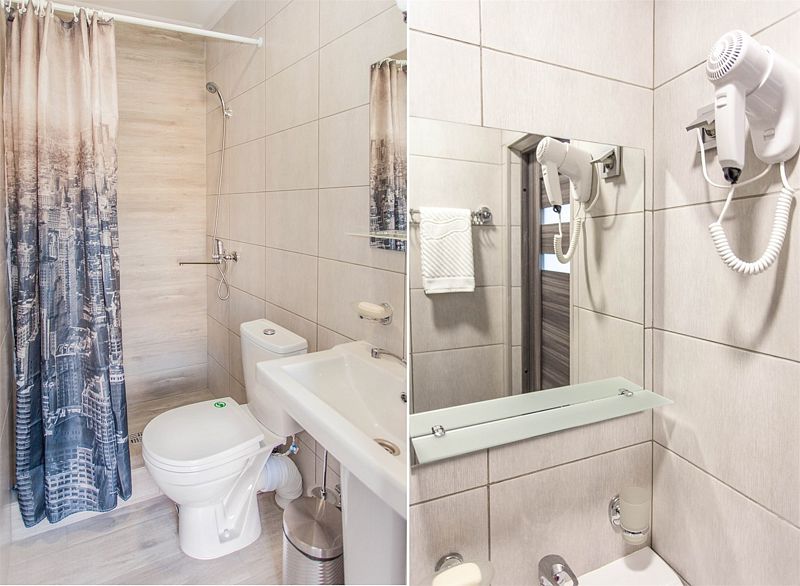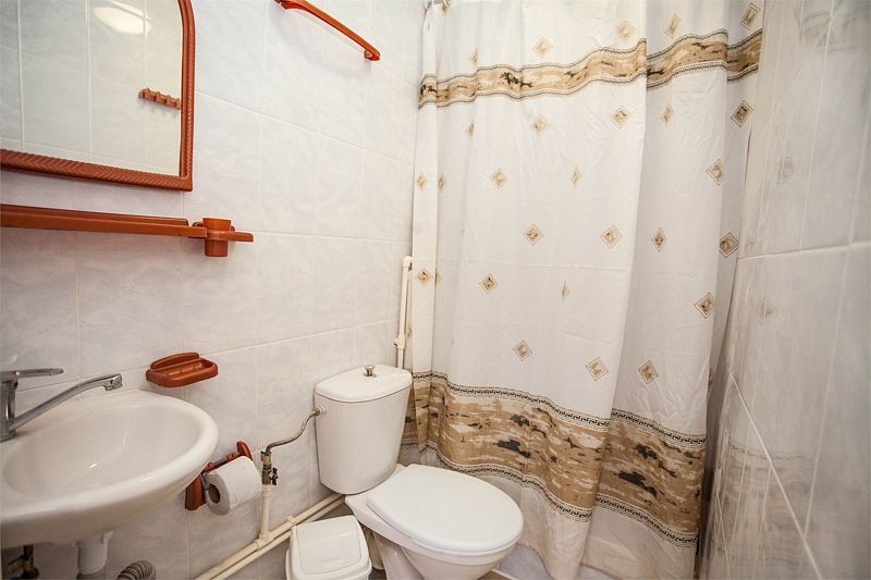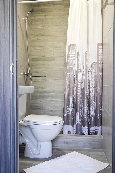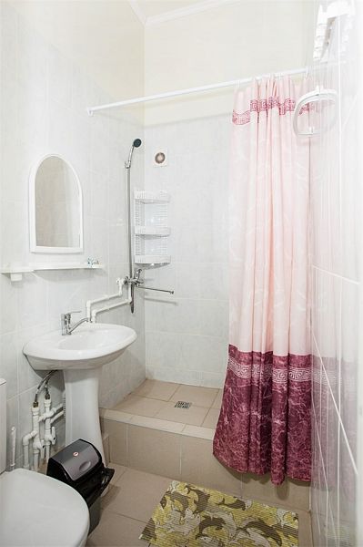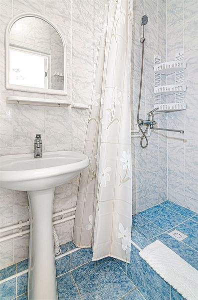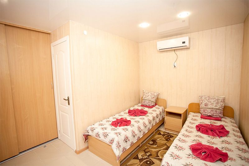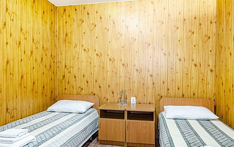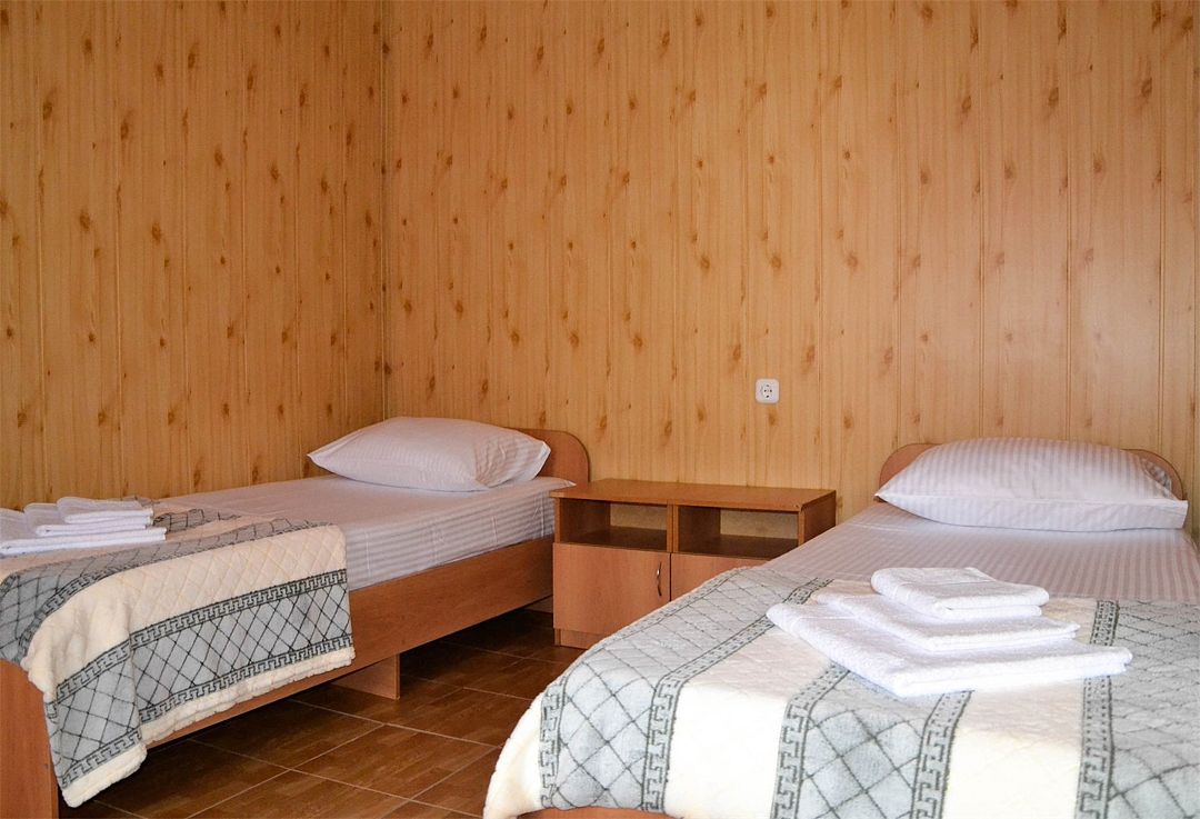 Номера расположены в двухэтажных коттеджах на втором этаже. Собственный санузел с душем в номере.