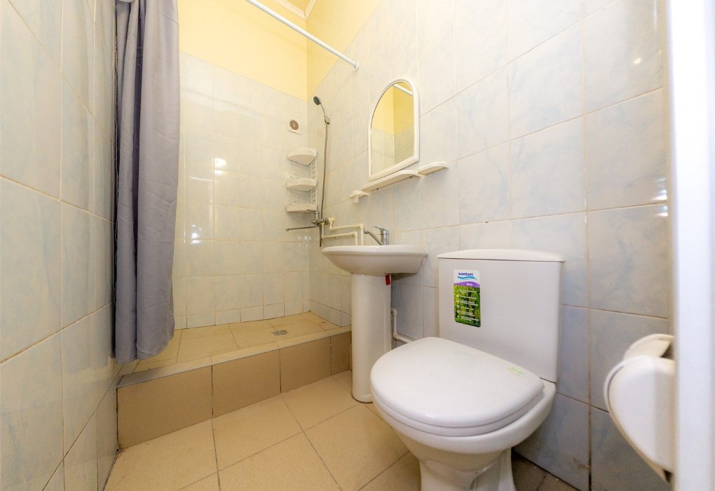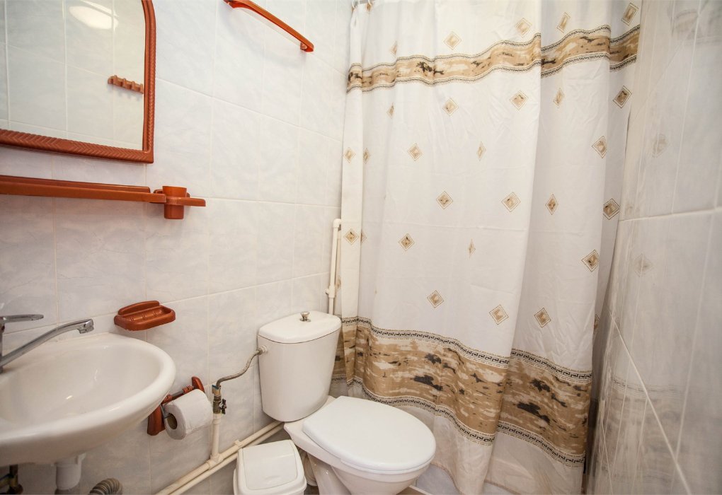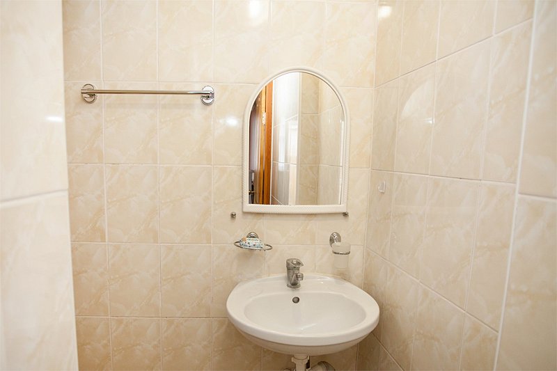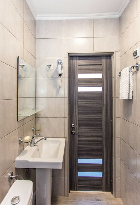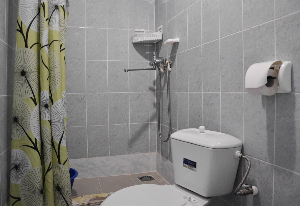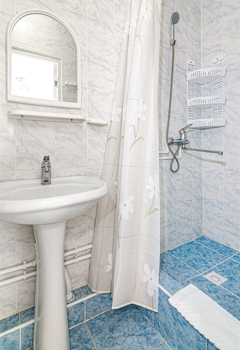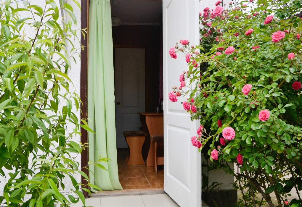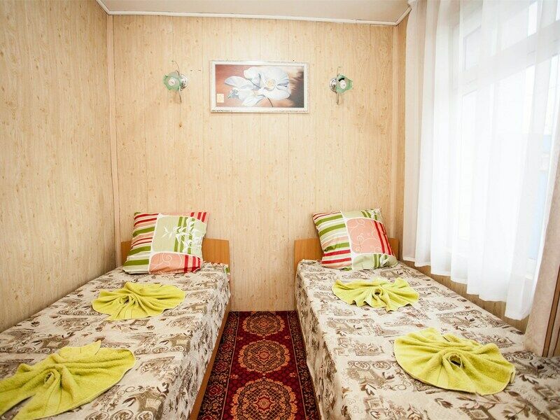 Трехместный номер категории «Эконом» в спокойных тонах. Для вас в номере — мини-холодильник, ТВ, сплит-система. Санузел с душем вне номера на веранде.