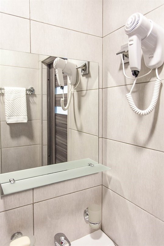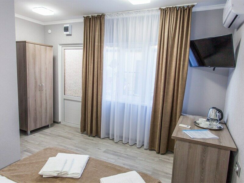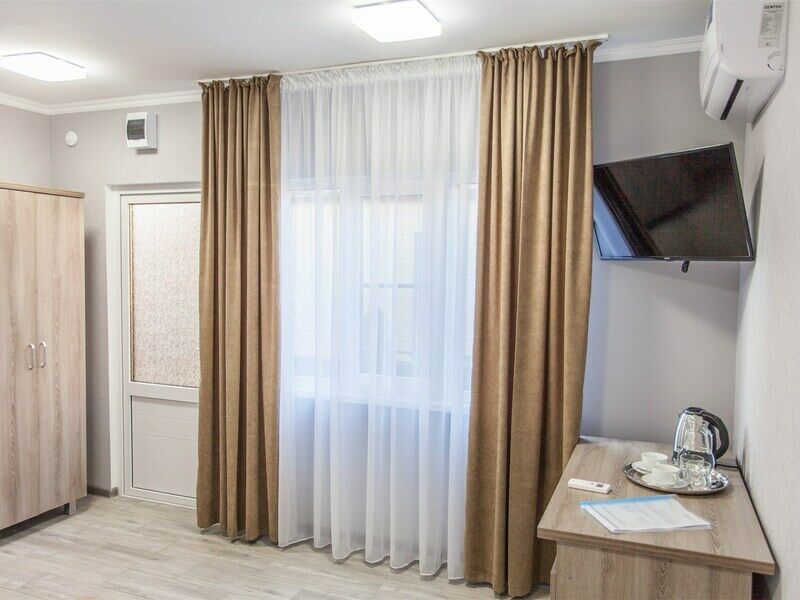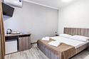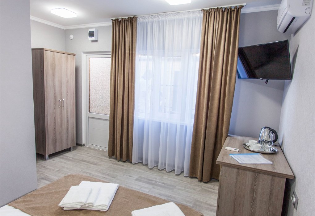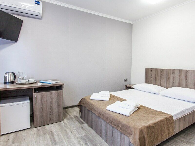 Двухместный номер категории «Комфорт». Для вас в номере: мини-холодильник, ТВ, сплит-система, чайник, фен.
