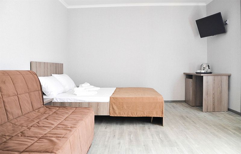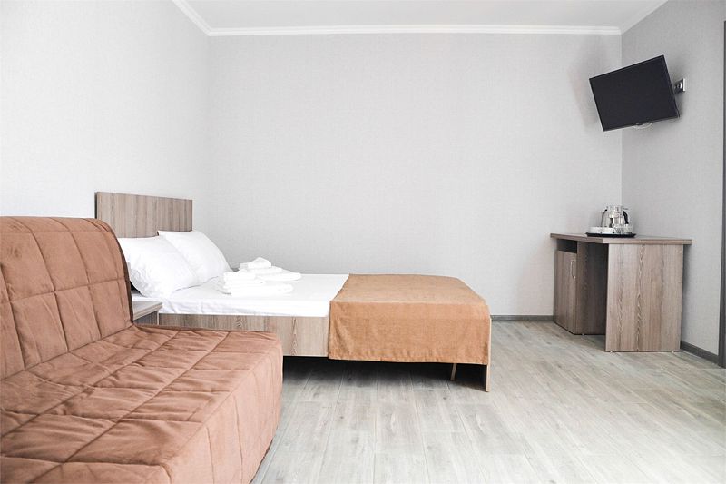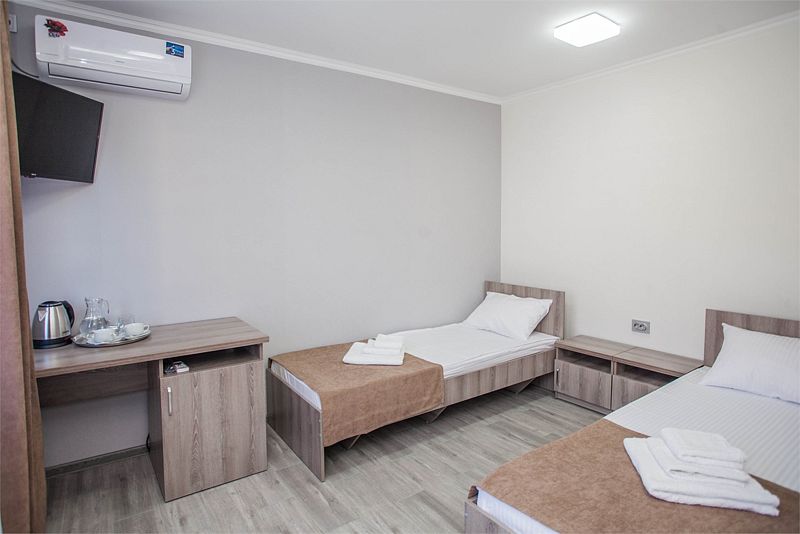 Стандартный номер из двух комнат со всем необходимым: мини-холодильник, ТВ, сплит-система, с/у. Номер расположен на 2 этаже корпуса