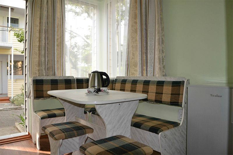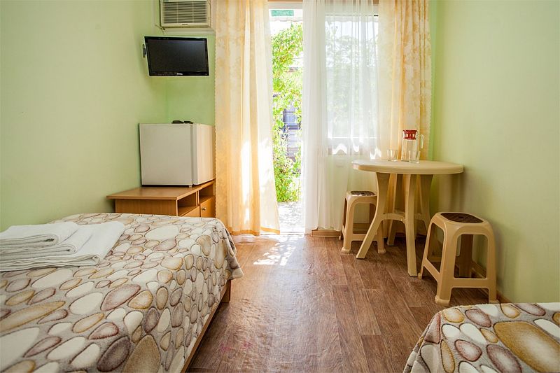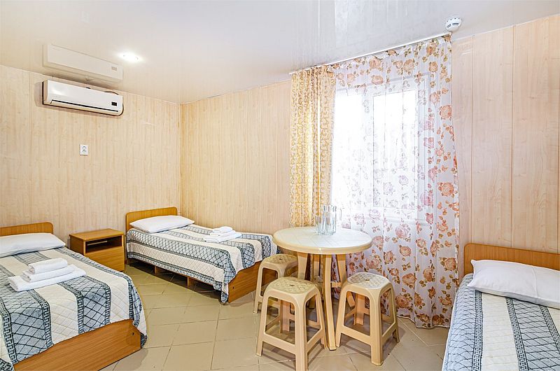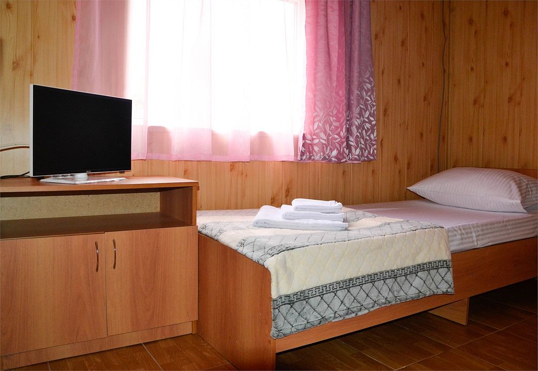 Путешествие с семьейОтдых с 12 по 20сентября 2022г.Нам все понравилось. Давно знали о данном пансионате, сестра сюда каждый год приезжает. И вот решились и мы. Мы ездили с годовалым сыном. Ехали на машине, заранее не бранировали, позвонила, уточнила есть ли свободные номера. Приехали мы в 8 вечера. Нам сразу сказали, что номера эконом выходят на танцпол и будет шумно. Мы взяли стандарт. Кондиционер, телевизор, холодильник. Все работало. Чайник в номере не предусмотрен, но на нашу просьбу, предоставили. Территория небольшая, но мы приехали на море, а не сидеть в номере. Далее, столовая чистая, вкусно кормили, сын щёки наел)). Рыба была каждый день, мясо, котлеты... Все было. Самое главное мы ни разу не выпили таблетки, с животами все в порядке! Из фруктов яблоки и апельсины. Сходили на рынок подкупили фруктов. Персонал на кухне отличный, приветливый! Есть детские стулья для кормления. Детская площадка конечно не очень, но горка, качели есть. Детская комната вполне достойная. Другие развлечения : настольный теннис, футбол имеется. Стирка стоит 100руб. Пляж супер! Песочек белый, чистый, море прозрачное, голубое, восторг! Менеджеры Жанна и Светлана , отдельное спасибо, на все просьбы и вопросы помогали, отвечали. И в целом весь персонал хороший, отзывчивый!