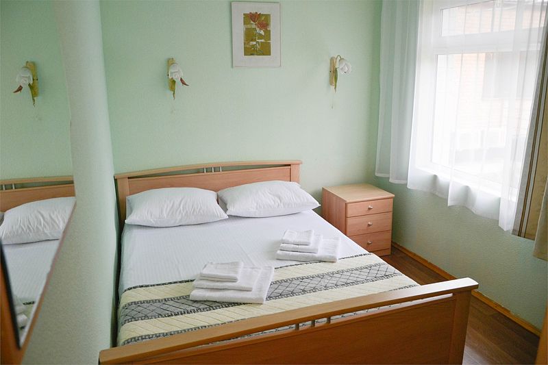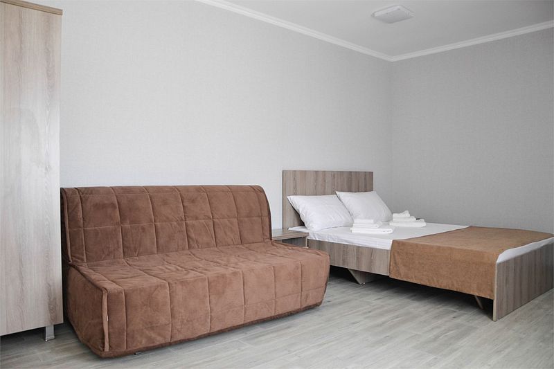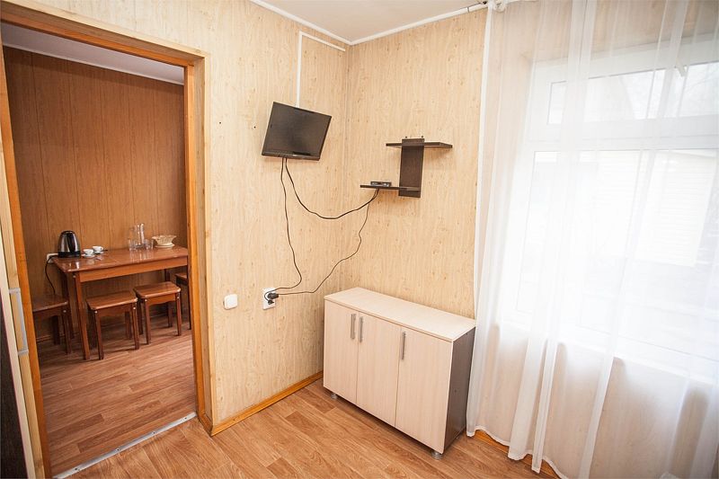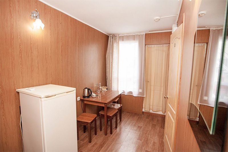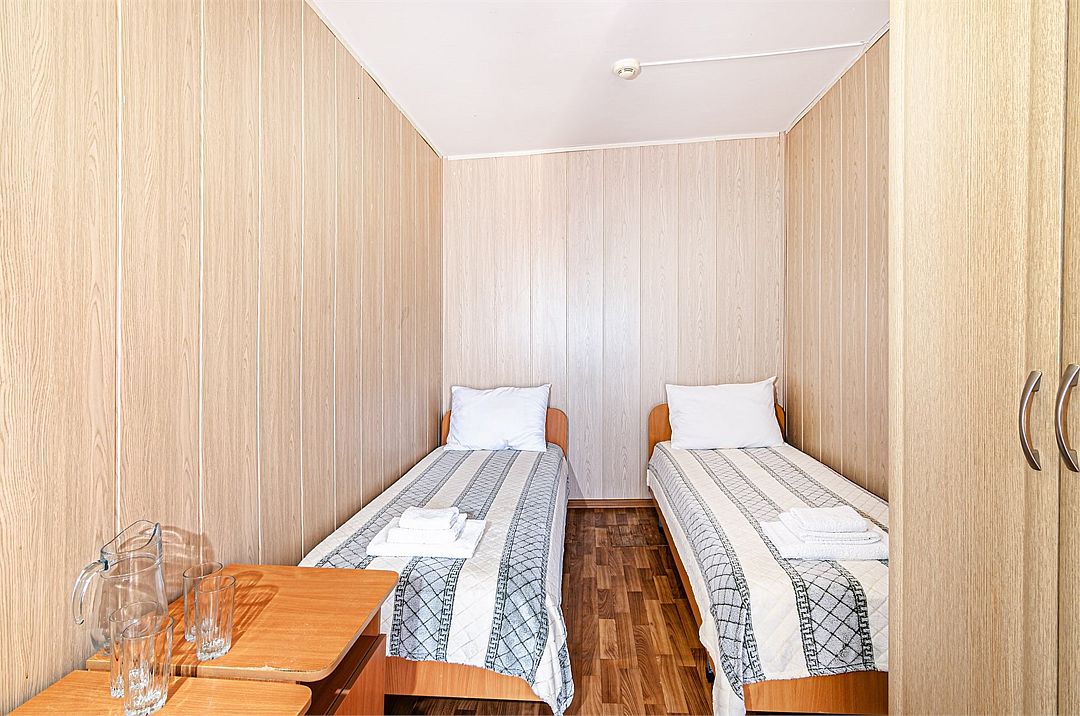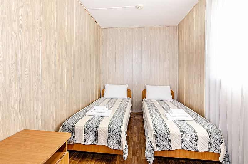 Четырехместный номер категории «Комфорт». В одной комнате расположены две односпальные кровати, во второй — одна двуспальная кровать. В номере имеется: холодильник, ТВ, сплит-система, чайник, фен, обеденная зона, с/у.