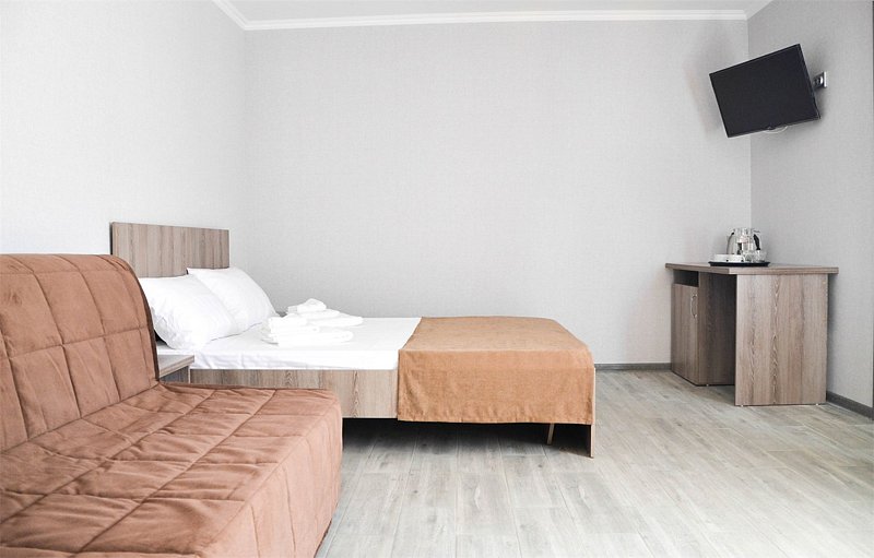 Стандартный просторный номер со всем необходимым: мини-холодильник, ТВ, сплит-система, с/у.