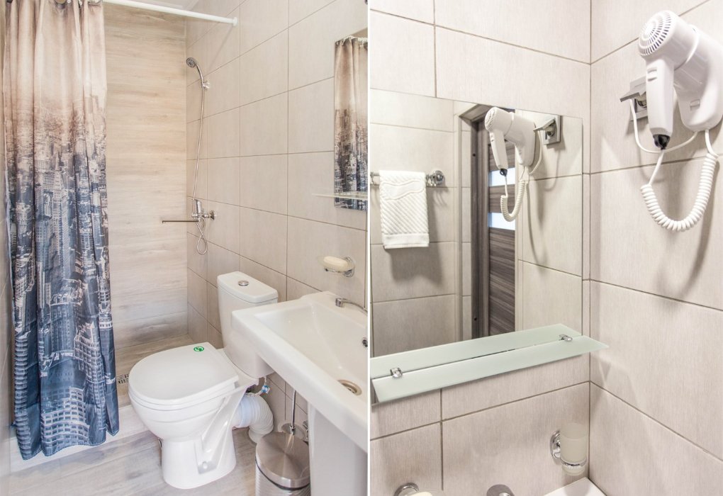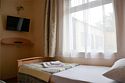Трехместный номер категории «Эконом» в спокойных тонах. Для вас в номере: мини-холодильник, ТВ, кондиционер. Санузел с душем в номере.