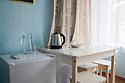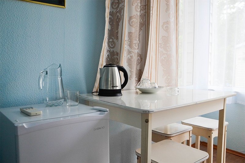 Двухкомнатный номер с обеденной зоной. В номере: холодильник, ТВ, сплит-система, чайник, фен, обеденная зона, с/у.